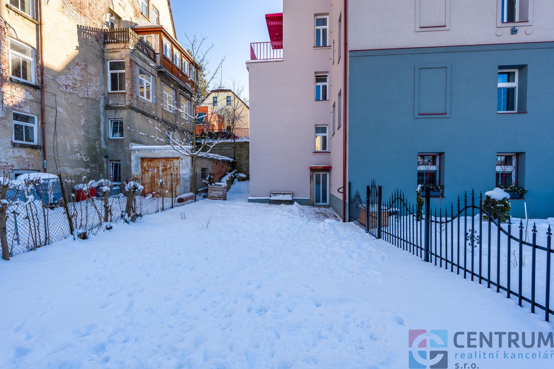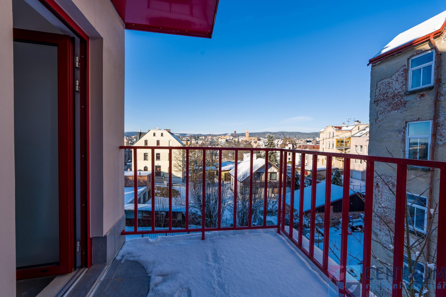 K bytu náleží přístup na dva společné balkony, ze kterých se otevírá nádherný výhled přímo na centrum Jablonce nad Nisou a na historickou radnici. Součástí prodeje je i komora v mezipatře. V rámci SVJ nabízí dům velkorysé úložné prostory jako je sklep s vlastní kójí, půda, sušárna, kočárkárna a také možnost využívat menší společnou zahradu.