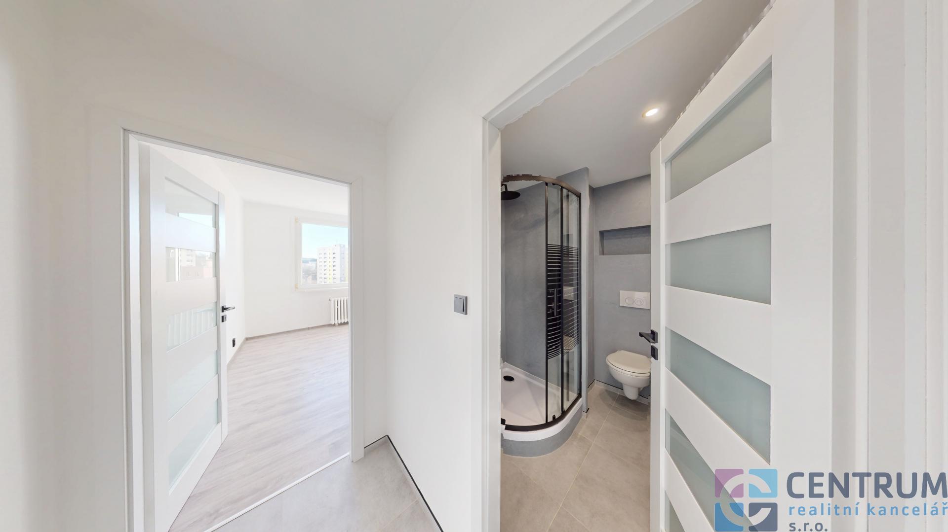 Nabízíme k pronájmu nově zrekonstruovaný byt o dispozici 1+1, který se nachází v 8. nadzemním podlaží revitalizovaného bytového domu s výtahem. Byt je po kompletní rekonstrukci a je připraven k okamžitému nastěhování. Dispozičně se skládá z jedné samostatné místnosti, kterou lze využít jako ložnici, pracovnu, a druhé místnosti s kuchyní, která může sloužit jako obývací pokoj s kuchyňským koutem. Součástí bytu je dále předsíň, koupelna s toaletou. Byt se nachází ve vyšším patře, což zajišťuje příjemný výhled a dostatek světla.