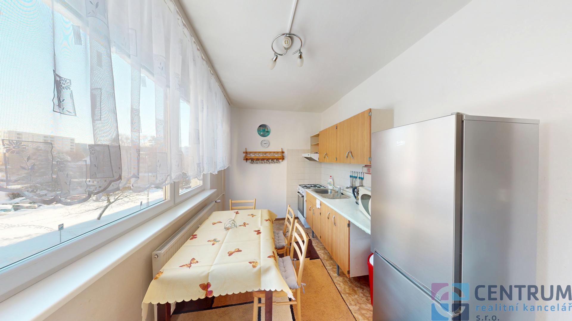 Dispozice zahrnuje obývací pokoj, ložnici, samostatnou kuchyň, koupelnu, oddělenou toaletu a prostornou předsíň. K bytu náleží také sklepní kóje.