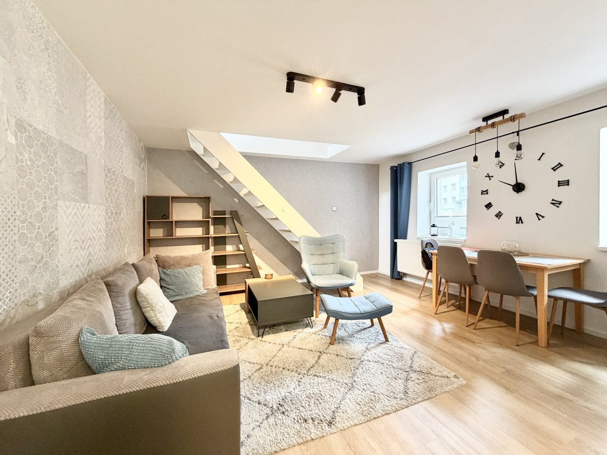 Byt se nabízí částečně vybavený. Kuchyně disponuje myčkou, elektrickou troubou, varnou deskou a digestoří. Obývací část je zařízena pohovkou, konferenčním stolem, křeslem a knihovnou. Ložnice je bez vybavení. V druhém pokoji najdeme pracovní stůl s židlí, šatní skříň, dvě postele a noční stolky. V koupelně je vana, umyvadlo a topný žebříček. Toaleta je umístěna samostatně.