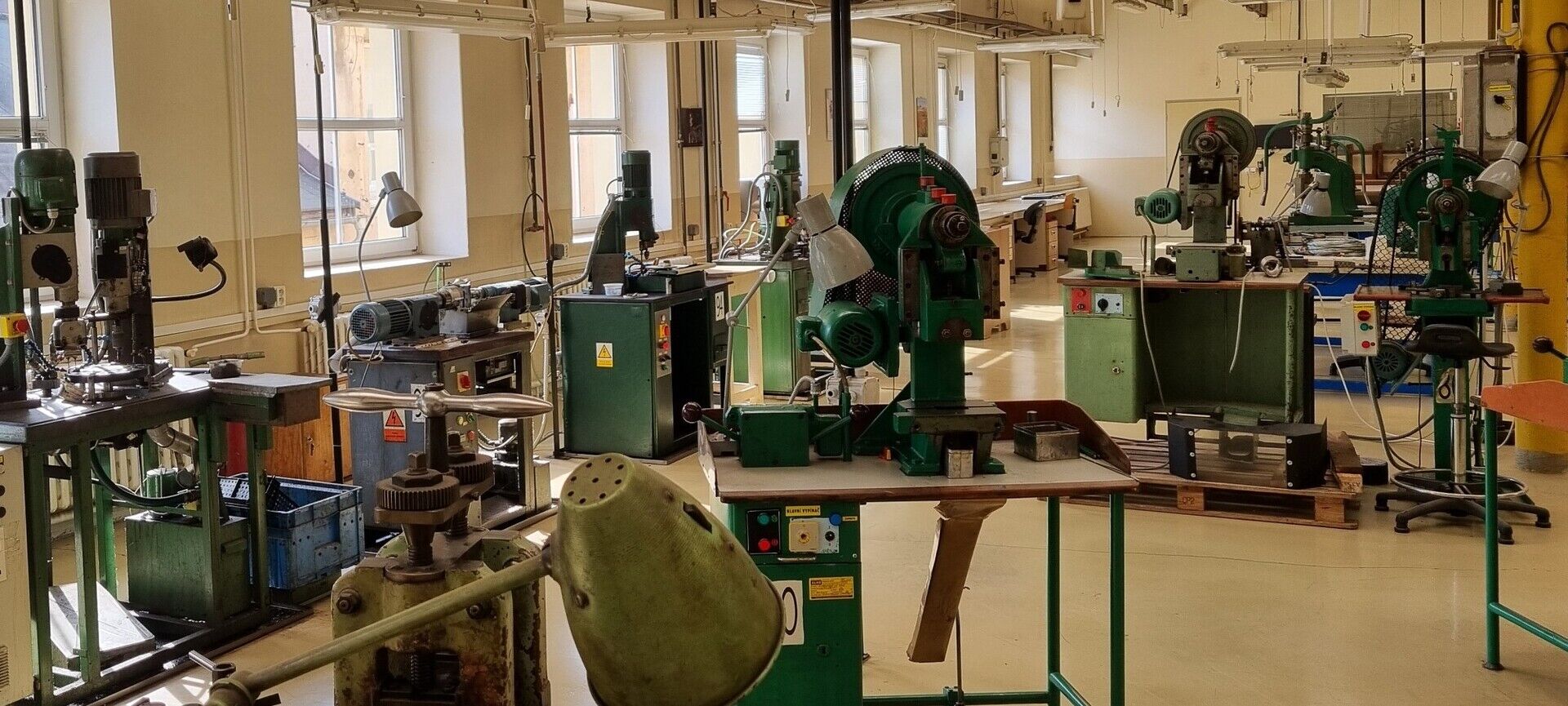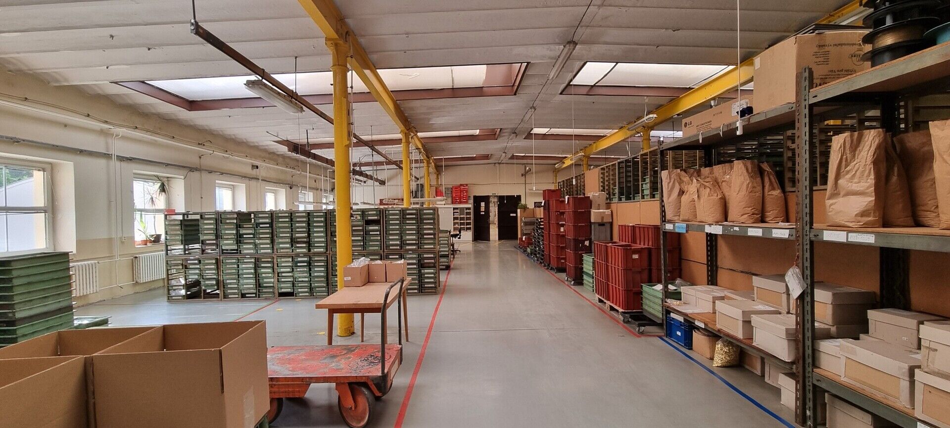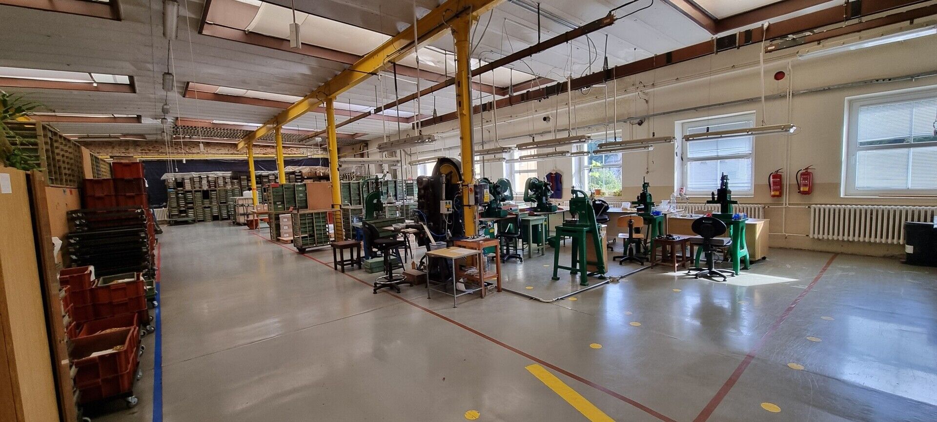 - 1. patro (1.300 m2): výrobní haly, sklady, svačinárna.