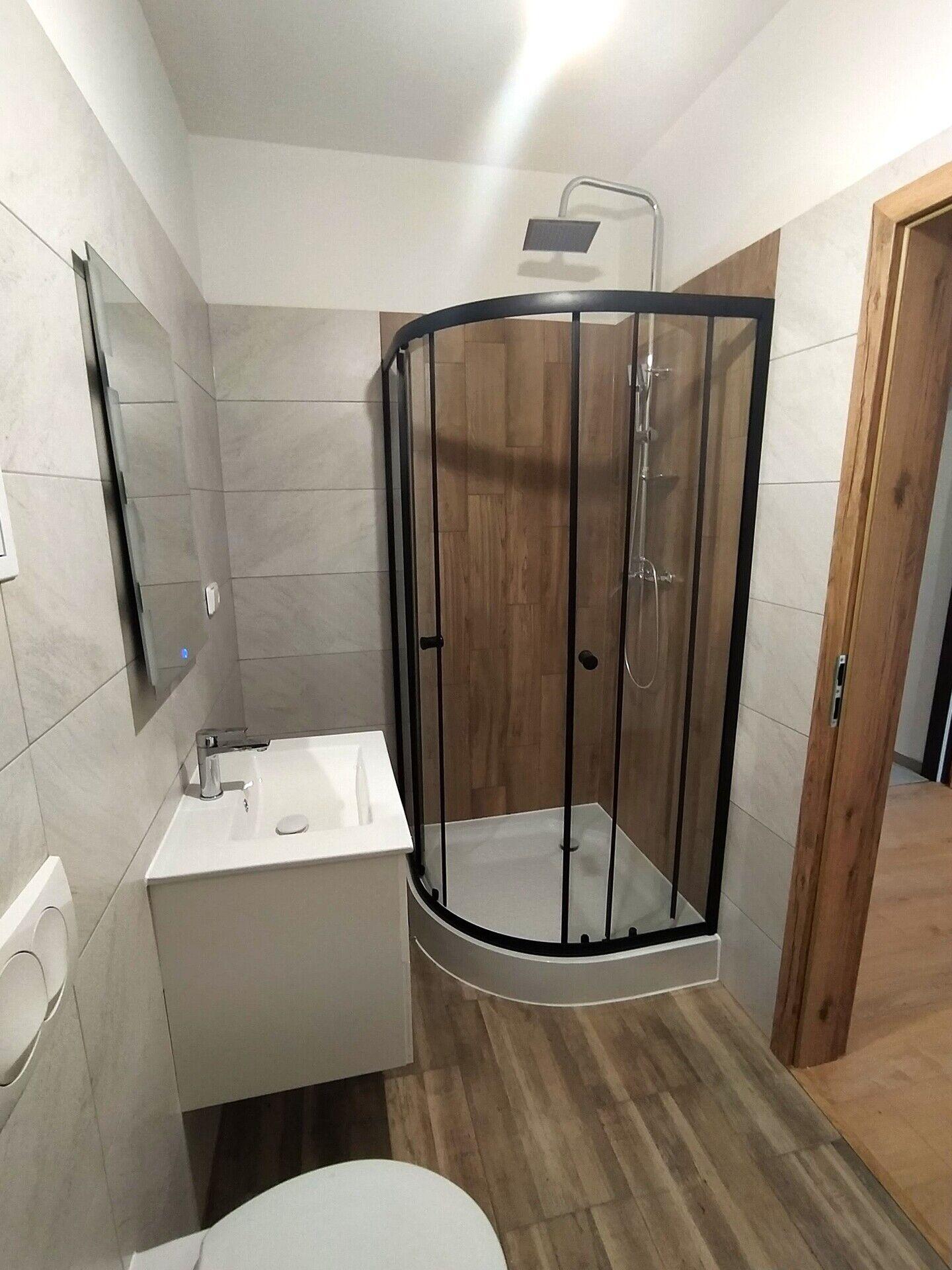 Nově vystavěném dvoupatrovém bytovém domě v obci Jablonném v Podještědí o 6 bytových jednotkách s dispozicí 1+KK ( prostorný obývací pokoj s kuch. koutem s WC a koupelnou).