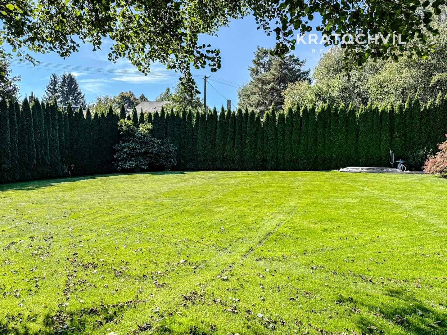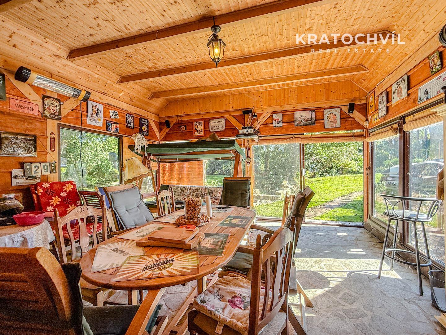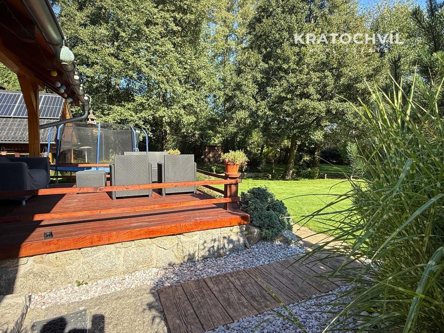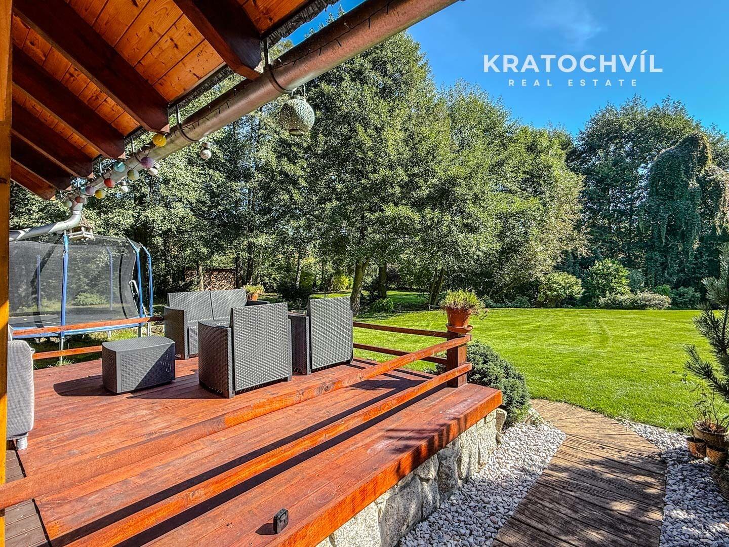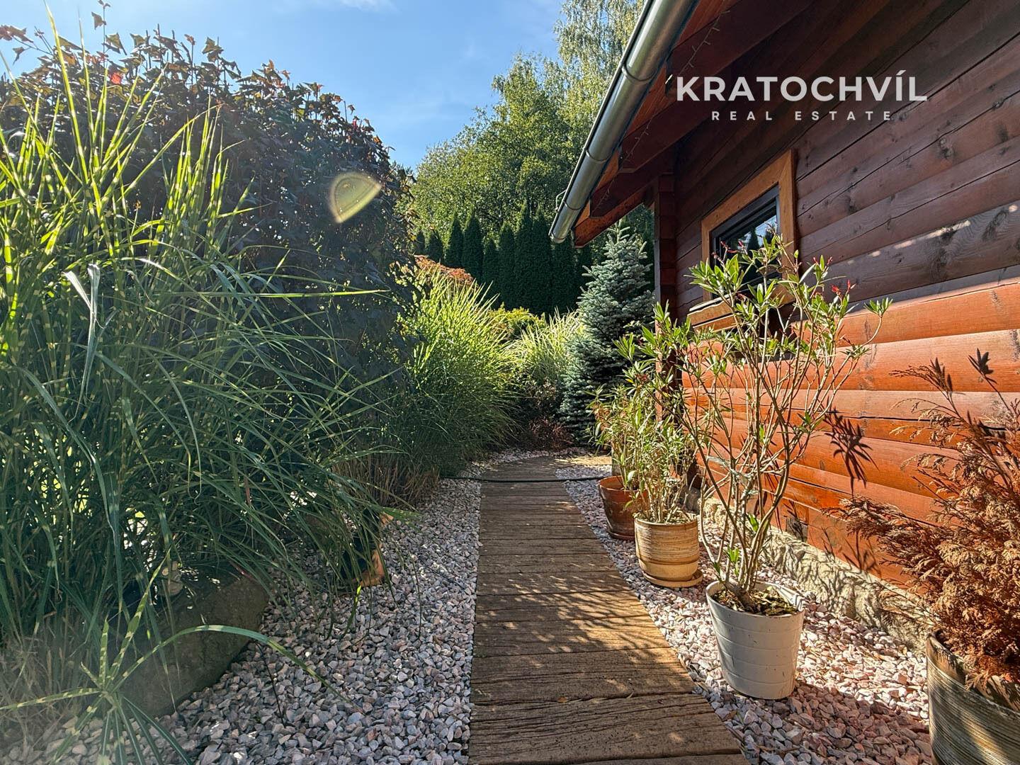 Dům je situován na prostorném pozemku o celkové výměře 2.482 m², který poskytuje dostatek soukromí, prostoru pro relaxaci i zahradní aktivity. Pozemkem protéká malebný potok, který přirozeně rozděluje zahradu na dvě části a dodává místu jedinečnou atmosféru a kontakt s okolní přírodou. Zastavěná plocha domu činí 80 m², celková podlahová plocha je 121 m².
