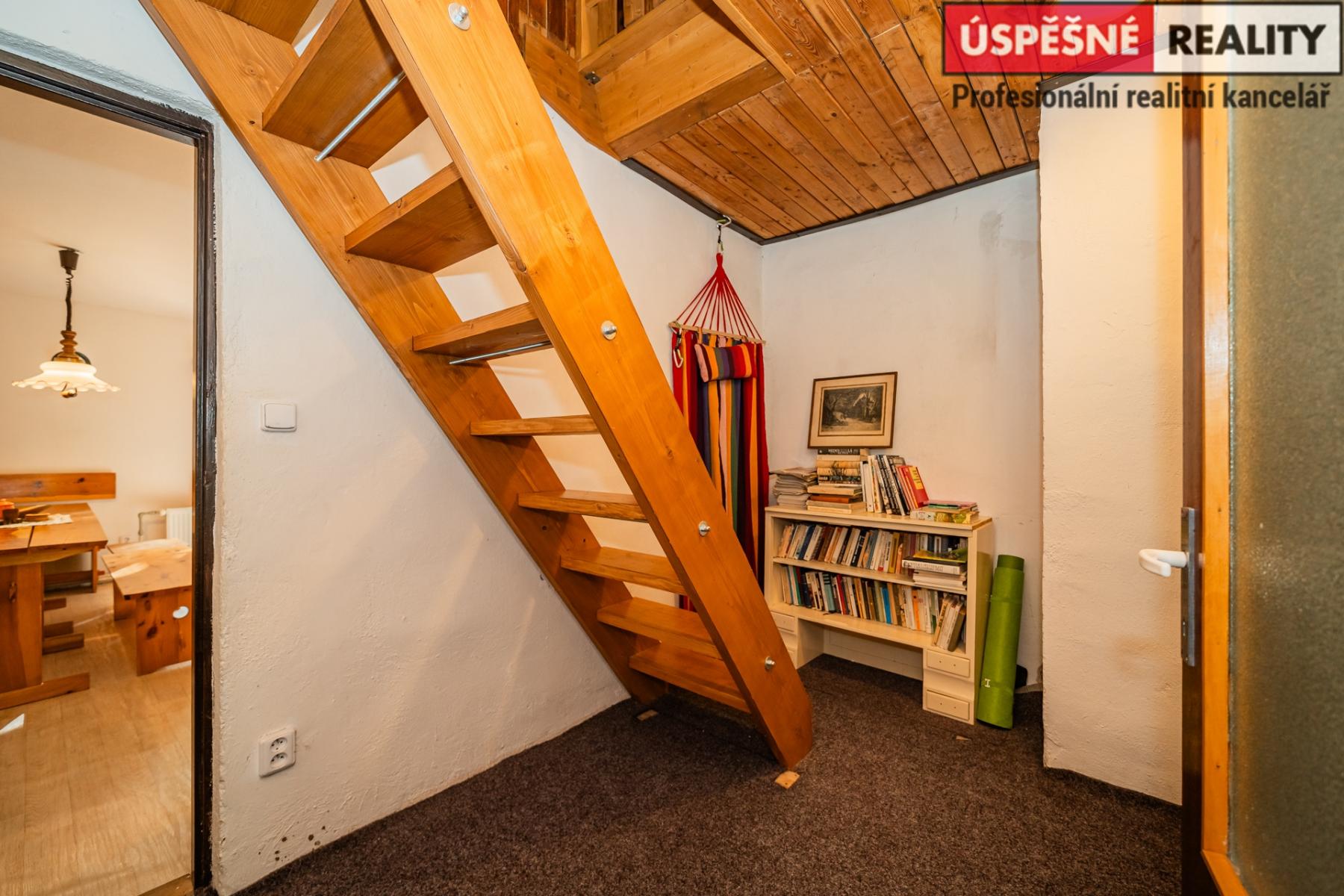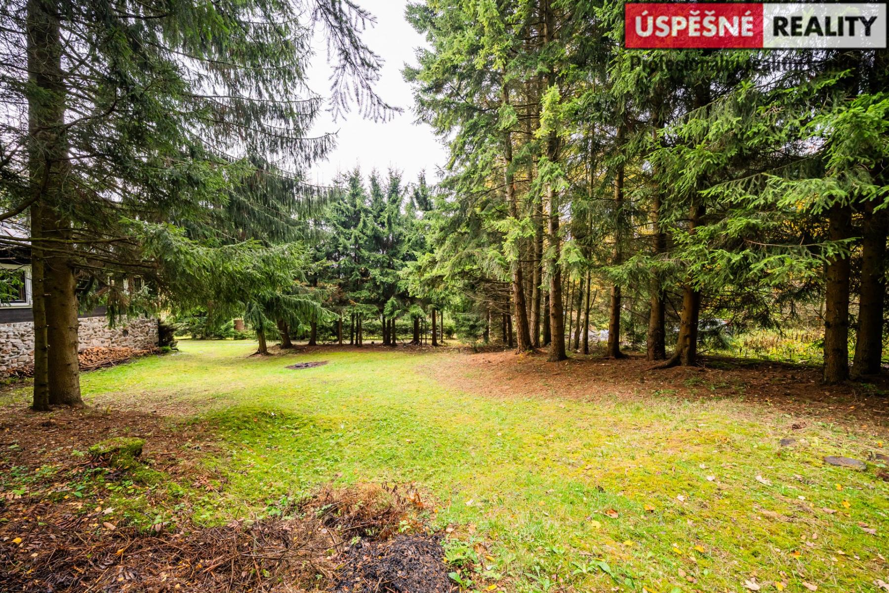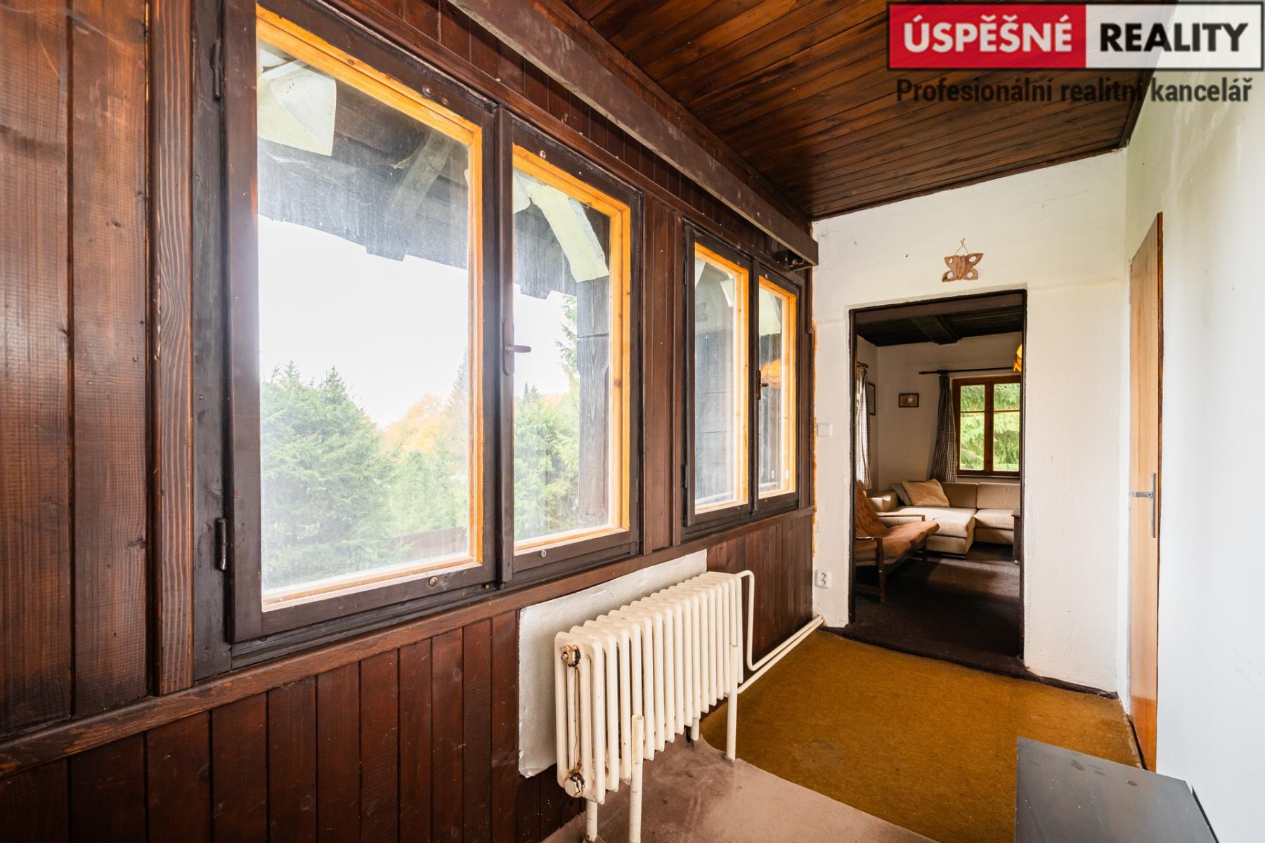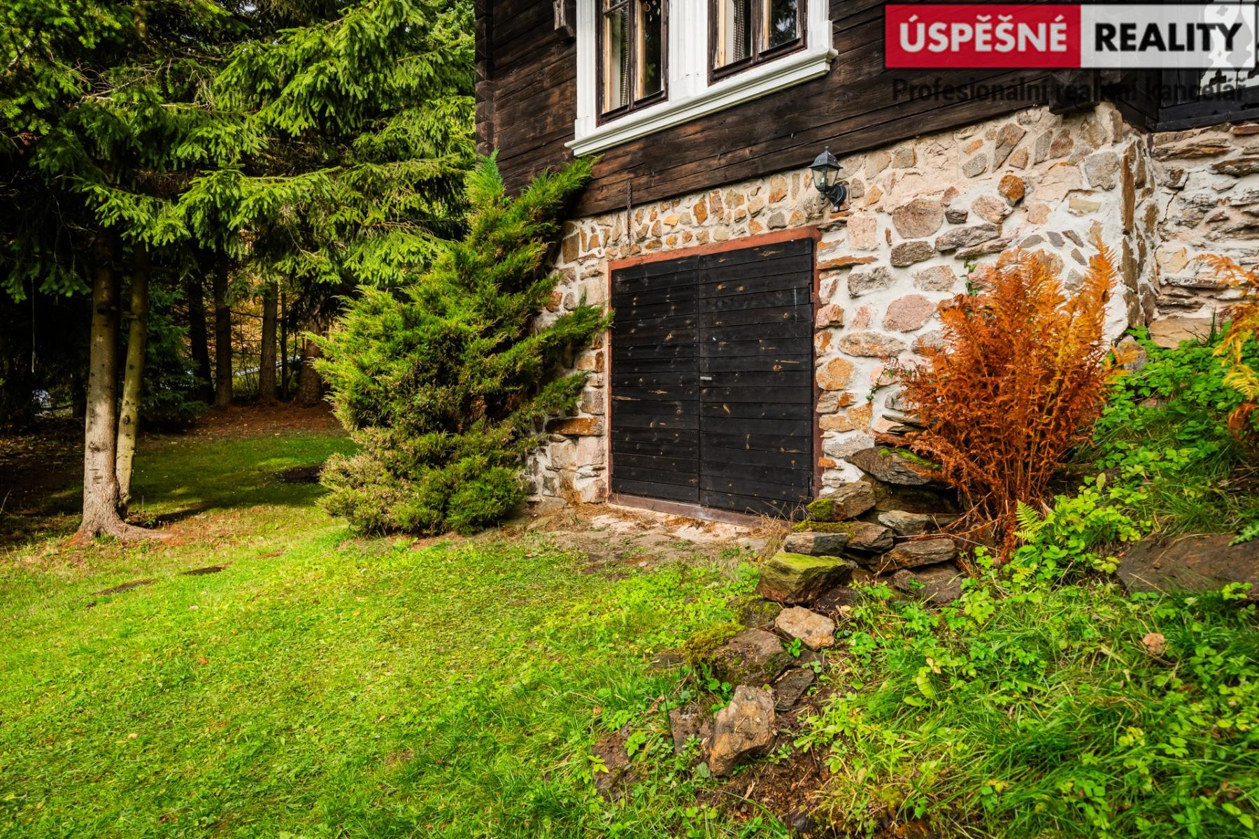 Hlavní komunikační prostor a srdce této nemovitosti tvoří velkoryse řešený obývací pokoj s krbovými kamny v přízemí, podkrovní část pak disponuje čtyřmi samostatnými ložnicemi. Vytápění objektu je zajištěno již zmíněnými krbovými kamny s výměníkem, v kombinaci s elektrokotlem na dálkové ovládání, voda je do něj přivedena z místního pramenu. Odpady jsou svedeny do septiku. Chata je situovaná na polosamotě a obklopená lesy a přírodou. Jednu z hranic pozemku lemuje malý potůček.