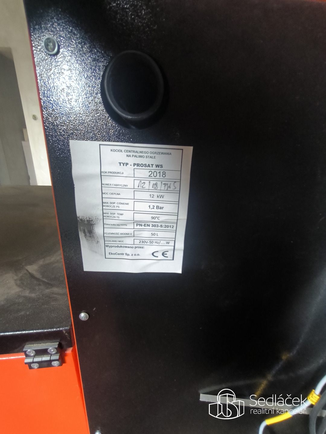 Okna jsou plastová s dvojskly. Vytápění bylo plánováno kotlem na tuhá paliva (uhlí/dřevo), který je součástí prodeje, avšak dosud není zapojen. Ohřev vody není v současnosti vyřešen, počítalo se s instalací bojleru.