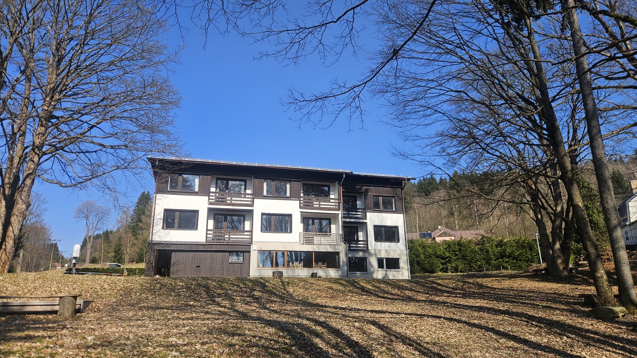 Nabízíme k prodeji atraktivní stavební pozemek o celkové výměře 8.231 m² v jedinečné lokalitě Jizerských hor na hranici obcí Horní Maxov a Janov nad Nisou, Dle územního plánu je na části pozemku možné realizovat výstavbu třípodlažní komerční stavby se zastavěnou plochou až 290 m², například apartmánového domu nebo penzionu, což představuje zajímavou investiční příležitost v jedné z nejvyhledávanějších horských oblastí.Součástí prodeje je zároveň stávající rekreační areál tvořený třípodlažní budovou se zastavěnou plochou 291 m² a celkovou užitnou plochou 635 m², která je aktuálně využívána jako penzion s kapacitou 45 lůžek. Objekt prošel částečnou rekonstrukcí, má energetickou náročnost PENB ve třídě B a disponuje vlastním zdrojem pitné vody i vlastní čistírnou odpadních vod. Vytápění je zajištěno moderní kotelnou s automatickým kombinovaným kotlem na pelety nebo uhlí.Budova nabízí plně funkční zázemí pro okamžité využití. V přízemí se nachází vstupní část, lyžárna s kolárnou, sauna a nově vybudovaná kuchyň s jídelnou pro 22 osob, dále technické zázemí včetně dílny, vodárny a kotelny. Ve druhém a třetím nadzemním podlaží je celkem 16 pokojů, z nichž některé mají balkon.Pozemek je obklopen udržovaným lesoparkem s posezením u jezírka s fontánou a přírodním potůčkem, což vytváří výjimečné prostředí pro rekreaci i další rozvoj. Lokalita nabízí celoroční využití – v zimě především lyžování, v létě cyklistiku a turistiku.Tato nabídka představuje ideální kombinaci stavebního pozemku s developerským potenciálem a již existujícího, provozně využitelného areálu, který umožňuje okamžité využití i další zhodnocení investice.