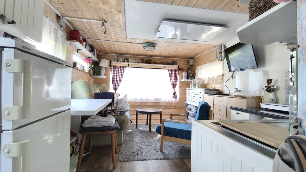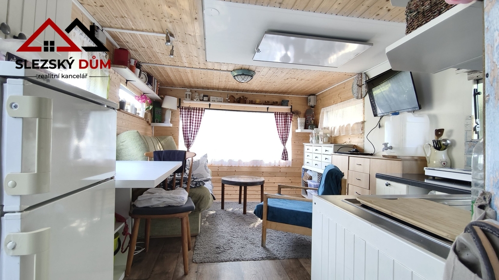 • mobilní dům v původní ceně 180tis, modernizovaný, vhodný k přespání a odpočinek nového majitele nebo pracovníků na stavbě