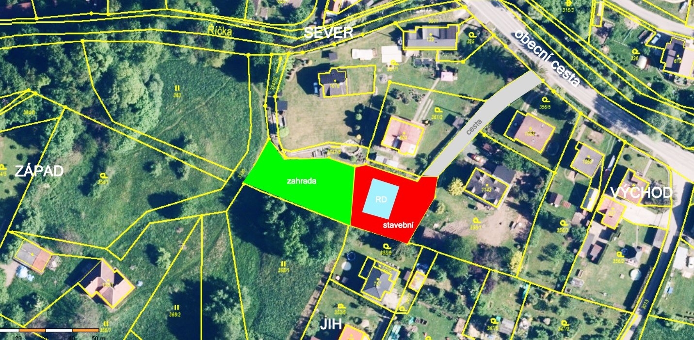 • přístup po soukromé cestě (vlastnický podíl ½, délka 57 m, testovaná nosnost 13t) z místní obecní komunikace