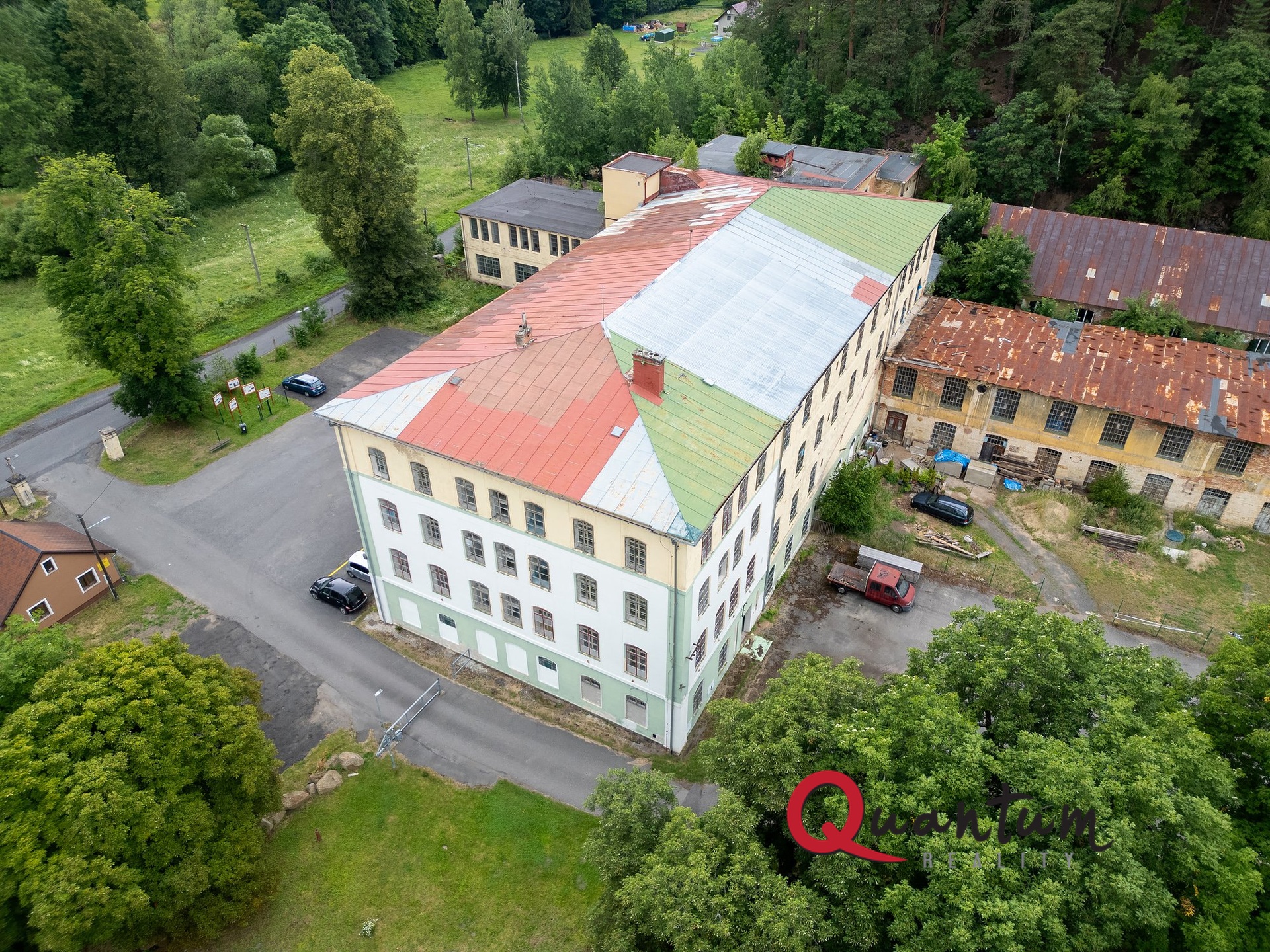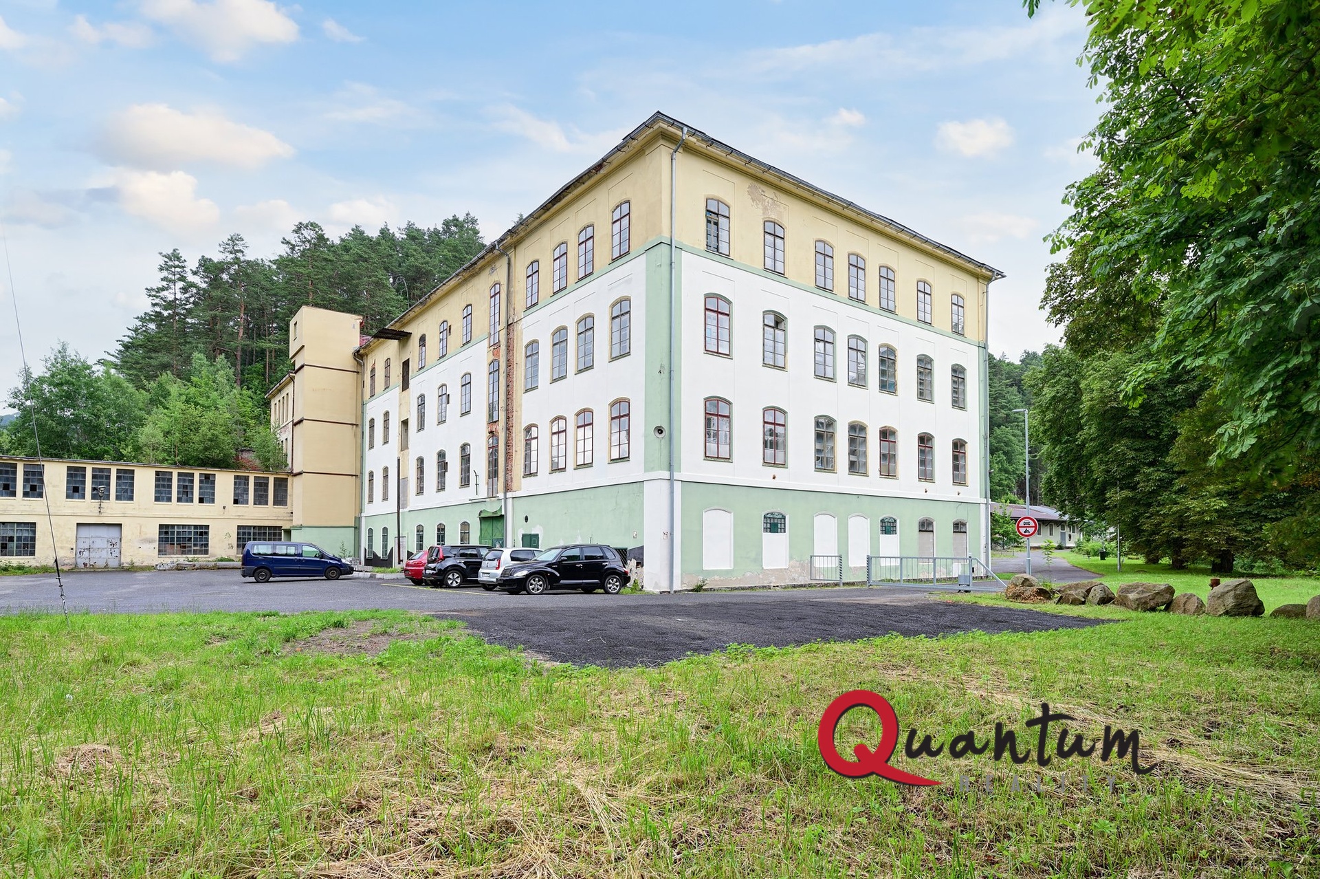 Hlavní budova má užitnou plochu cca 3600 m2 (každé podlaží cca 900 m2), z čela budovy jsou v cca 1/4 kancelářské a provozní prostory ve všech podlažích, podstatnou část, cca 3/4, tvoří výrobní prostory. Stavba má bytelnou zděnou nosnou konstrukci s masivními železobetonovými stropy. K dispozici je v tomto objektu i obrovská půda. Vjezdová vrata a vstup je z hlavního parkoviště, které je na obecním pozemku.