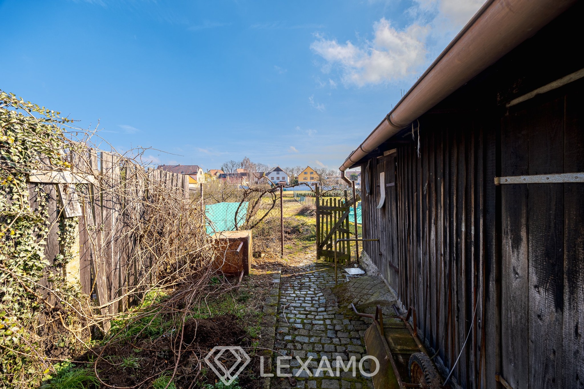 Součástí nemovitosti je dvorek, garáž, dvě kůlny poskytující dostatek úložného prostoru a rovinatá zahrada o výměře 431 m². Celková plocha pozemku činí 620 m² a poskytuje dostatek prostoru pro relaxaci, zahradničení i rodinné posezení.