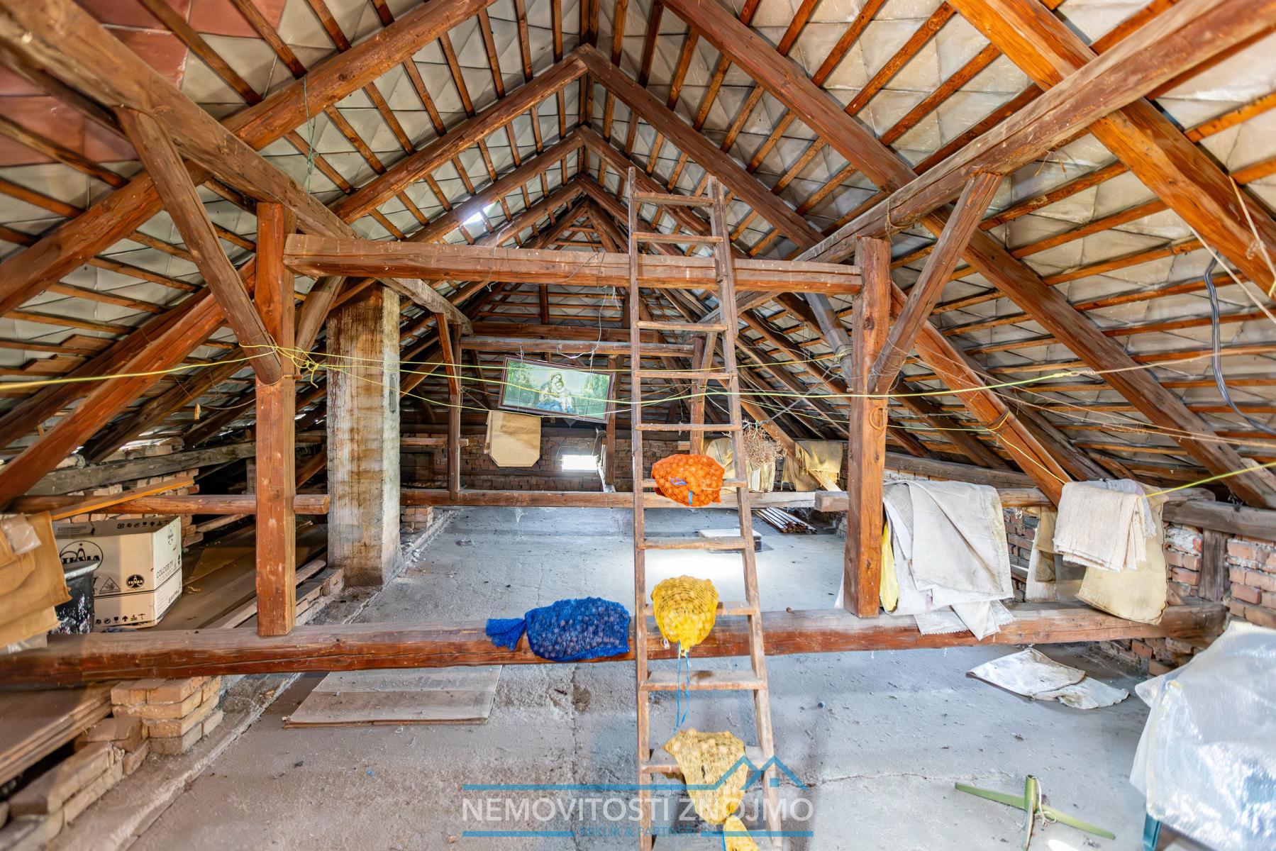 Dispozice domu zahrnuje kuchyňský kout s jídelnou, obývací pokoj, ložnici a druhou ložnici s balkonem, která má vlastní samostatný vchod i koupelnu vhodné pro oddělené bydlení nebo pronájem. Nad přízemím je půdní prostor, kde lze vybudovat další bytovou jednotku.