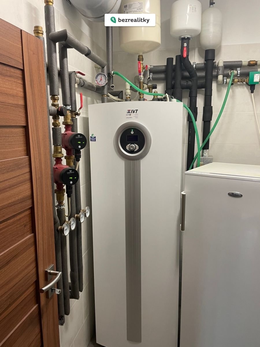 Dům je vytápěn tepelným čerpadlem země/voda – dva vrty do hloubky cca 60m, alternativně krbem v obývacím pokoji s teplovzdušnými rozvody do horních pokojů a koupelny. Město Javorník se nachází v klimaticky velmi příhodných podmínkách, proto tedy celkové měsíční náklady na elektřinu se pohybují pod 4.000 kč/ měsíc včetně vaření, svícení apod. Krb nebyl nikdy využíván k přitápění, pouze k vytváření „atmosféry“ … Z důvodu užitného komfortu krbu, je ze samostatné technické místnosti zbudováno zadní přikládání, tudíž prach, případný dým neohrožuje a neznečišťuje obytné prostory.