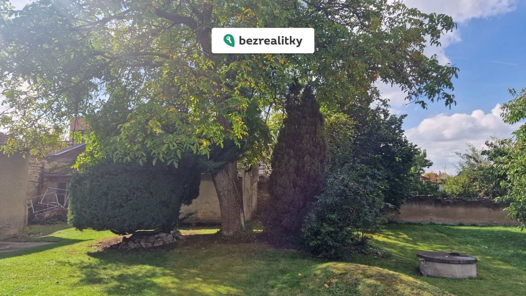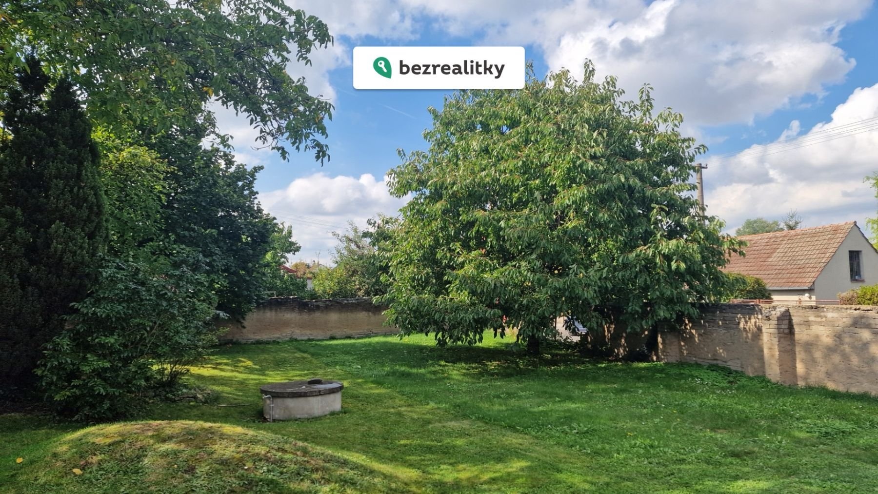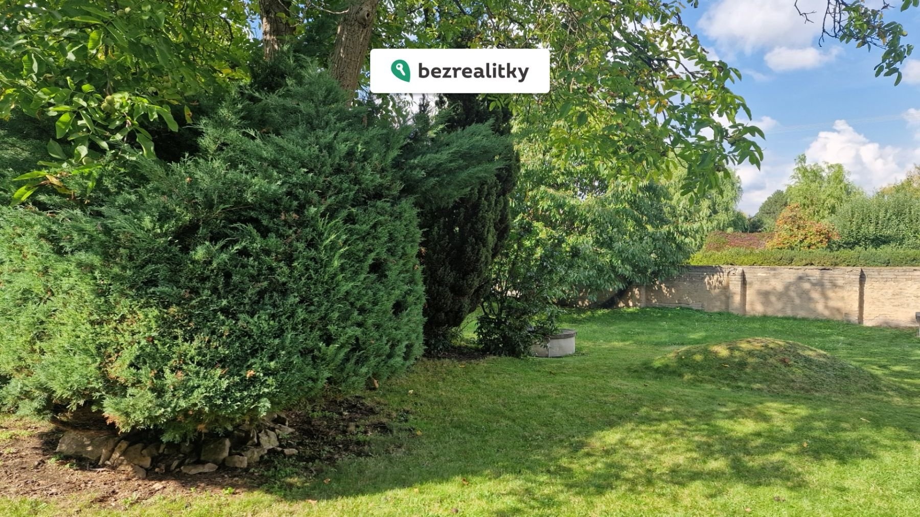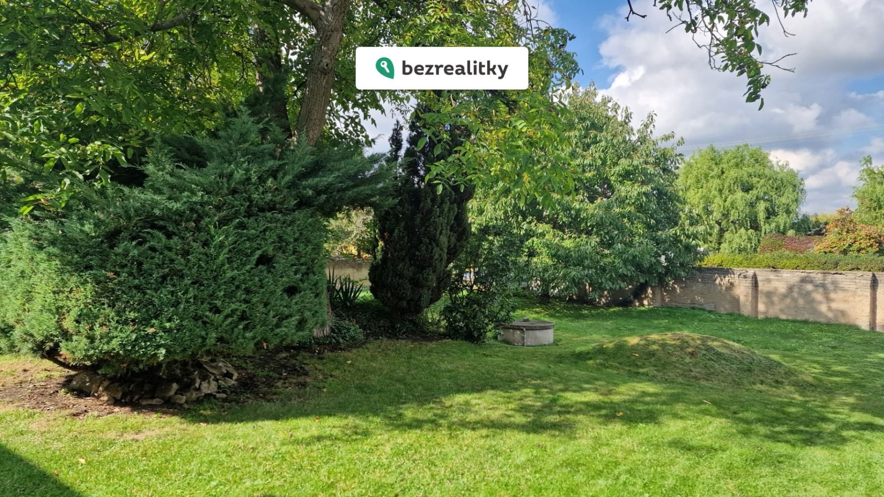 Rovinatá zahrada o výměře 282 m² je oázou klidu a soukromí. Její obvod je lemován zdí, který je nutno opravit, přičemž materiál na nový, moderní plot z oboustranně vzorovaných betonových odlitků je již zakoupen a je součástí prodeje. Na zahradě najdete vzrostlé stromy (ořešák, třešeň, líska, jabloň, túje), které v létě poskytují příjemný stín.