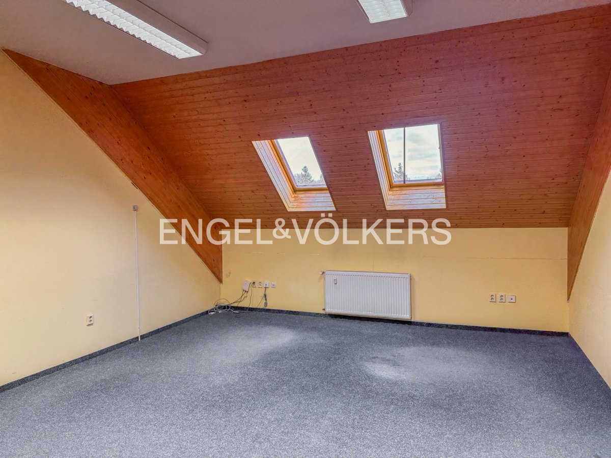 K pronájmu nabízíme kancelářské prostory v krásném moderním areálu v obci Jeneč v okrese Praha-západ. Kancelářský prostor o celkové rozloze 116 m² se nachází v prvním patře budovy a skládá se ze čtyř vzájemně propojených kanceláří. Dispozice umožňuje rozdělení na dvě samostatné jednotky, každou o velikosti 58 m². K dispozici je společné sociální zázemí.