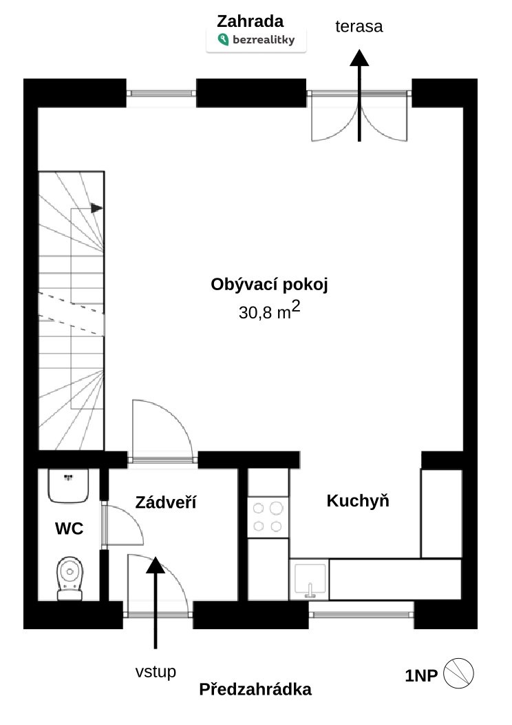 Dům je prodáván bez vybavení, součástí je pouze kuchyň se spotřebiči a vestavné skříně.