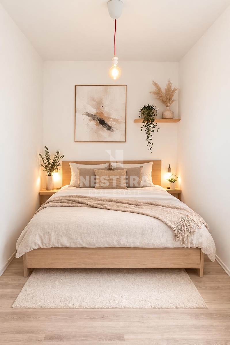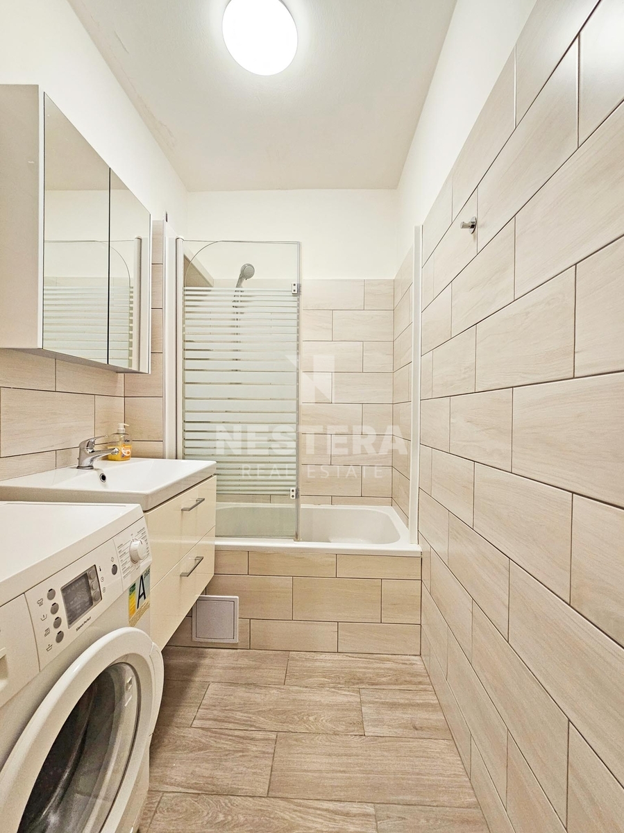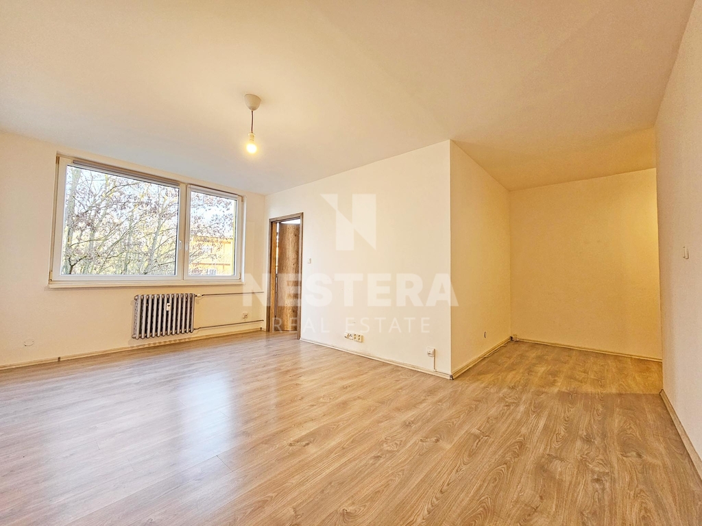 Dispozice bytu je praktická a dobře řešená. Tvoří ji prostorná předsíň, samostatná toaleta, koupelna s vanou kombinovanou se sprchou, kde je zároveň umístěna i pračka, dále obývací pokoj s moderním kuchyňským koutem a samostatná ložnice. Byt má východní orientaci, kterou oceníte zejména během horkých letních dnů – interiér se zbytečně nepřehřívá a večerní slunce nenarušuje domácí pohodu.