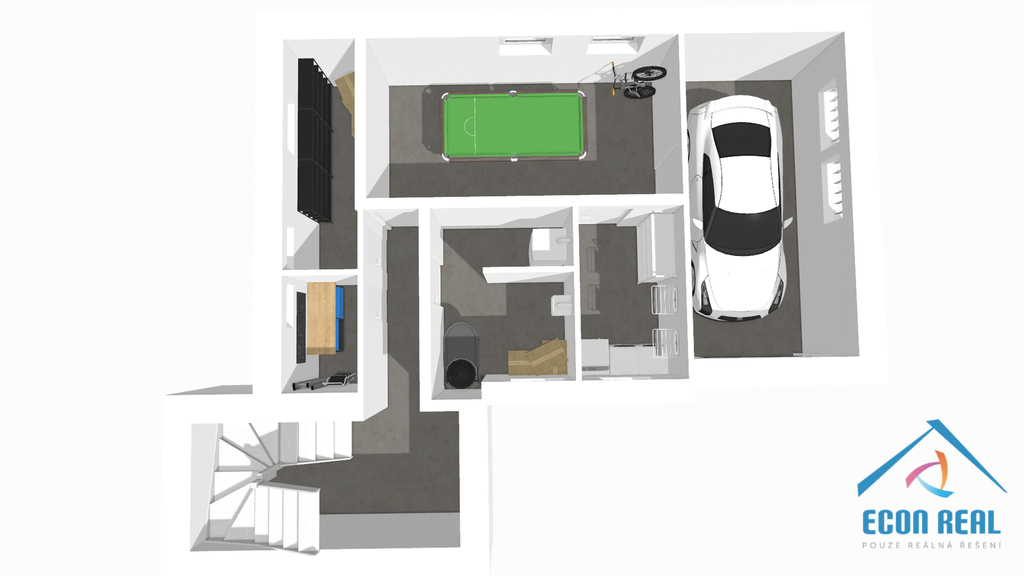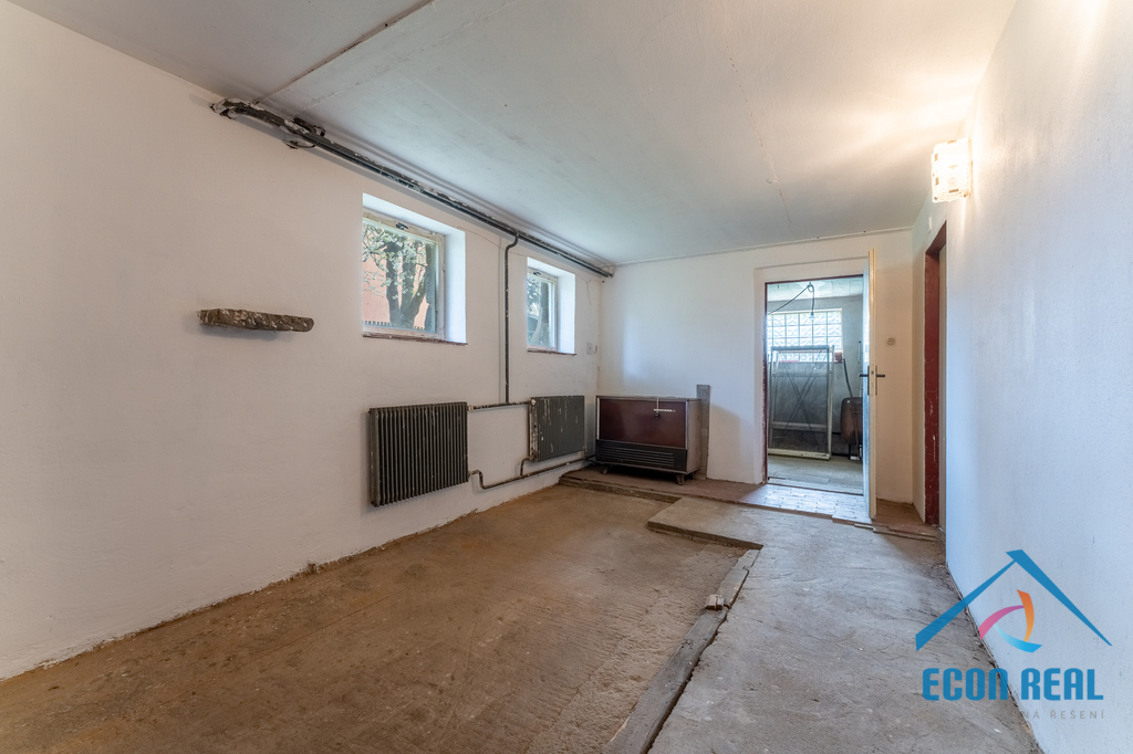 V nižším podlaží najdete skladové prostory, potravinový sklep, prádelnu, potenciální hernu s akumulačními kamny a kotelnu s funkčním kotlem na tuhá paliva, bojlerem na ohřev vody a moderním, nízkoenergetickým plynovým kotlem BOSH (v podstatě nový).