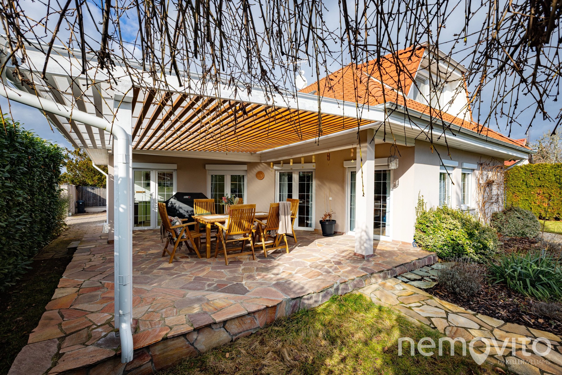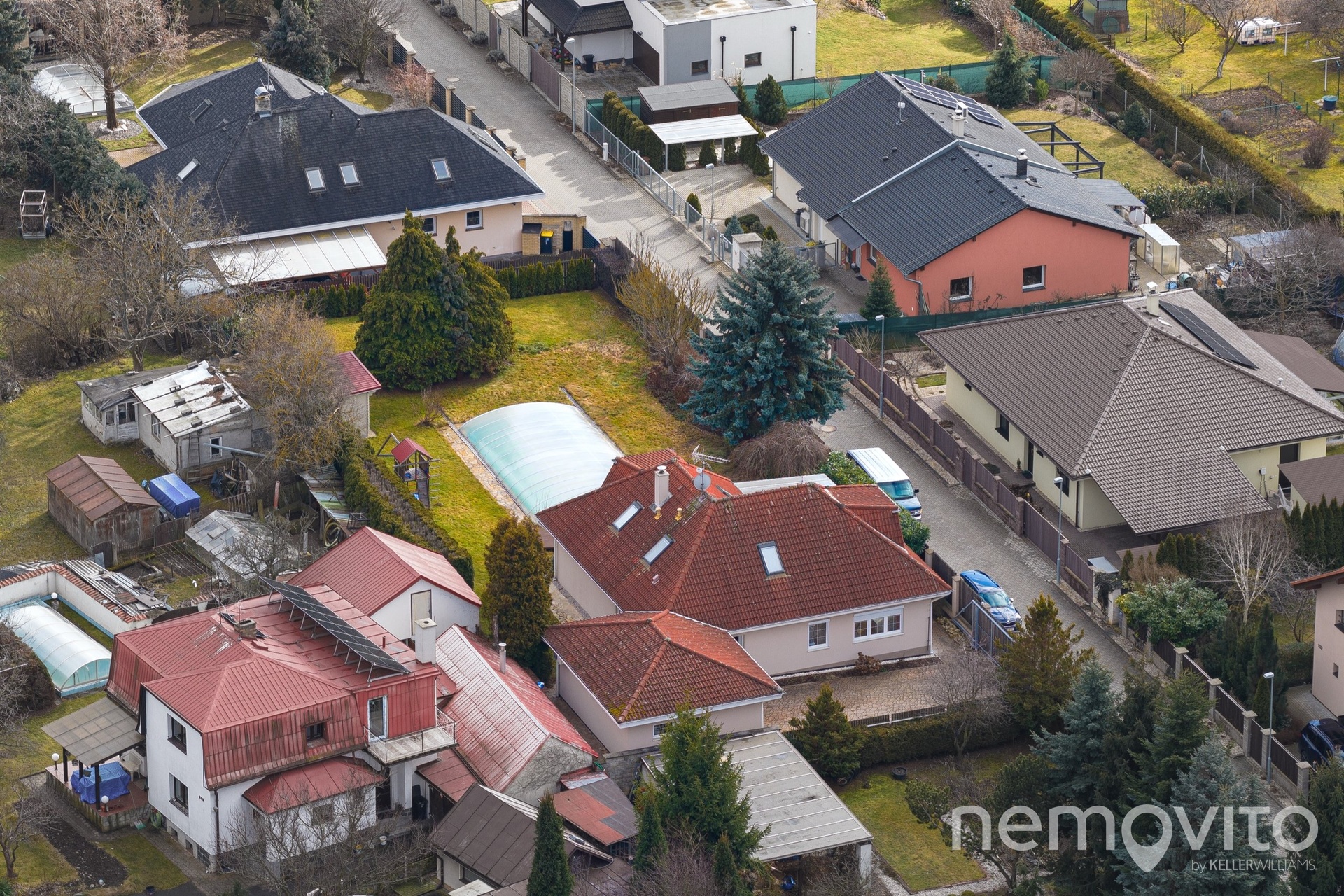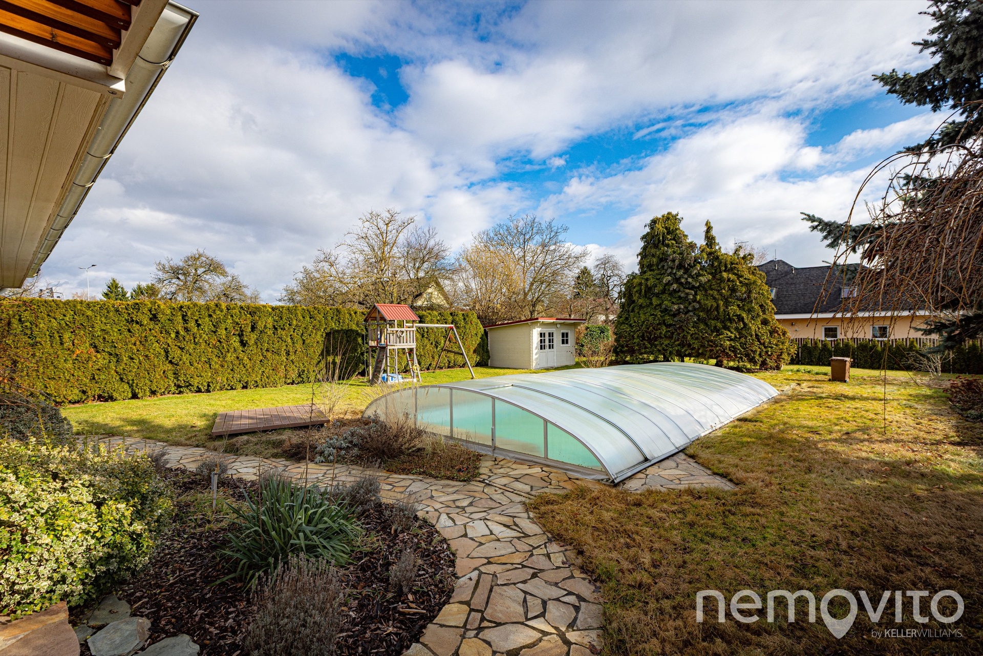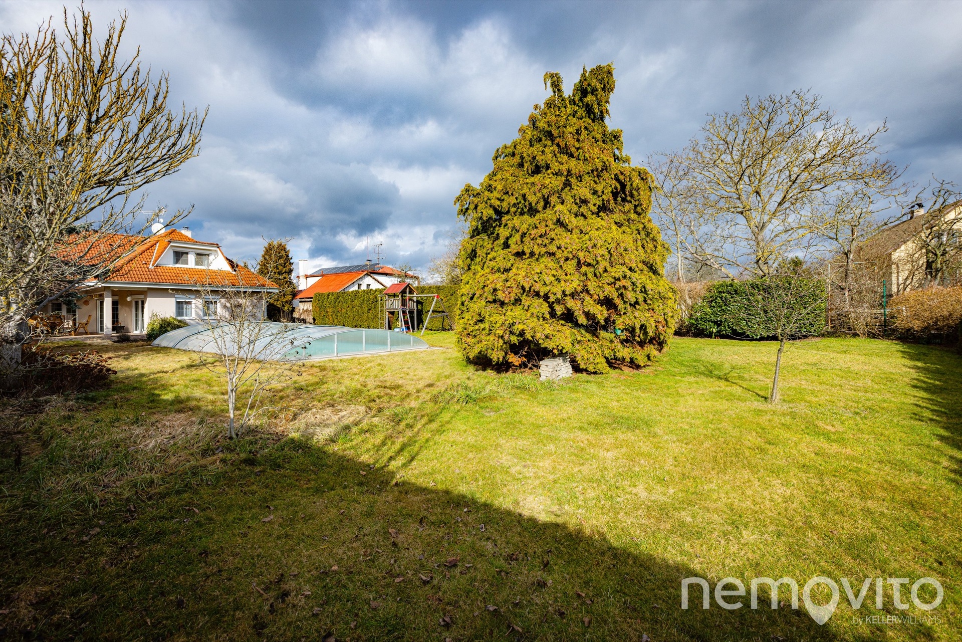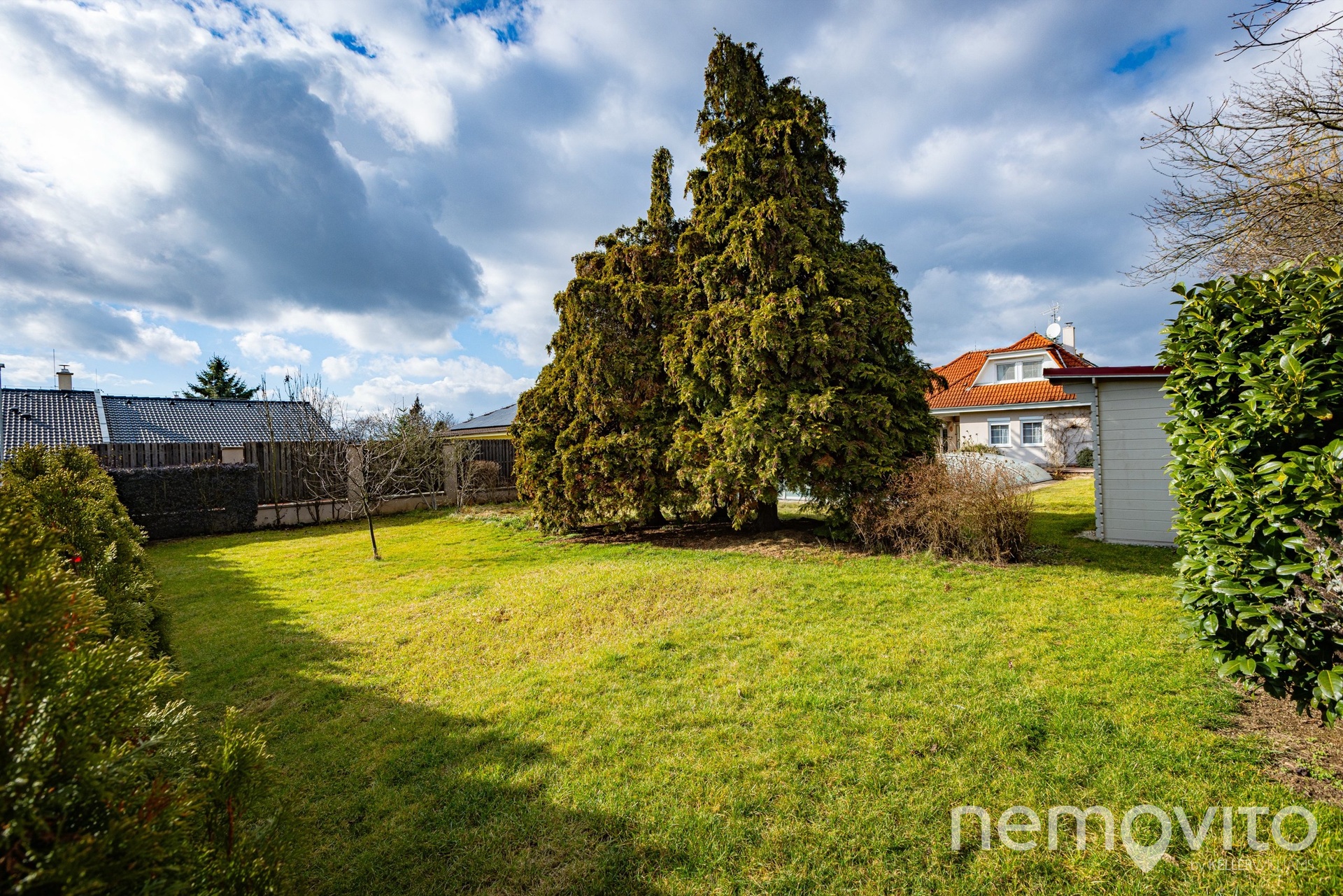 Pozemek je orientovaný na jih, mimo bazénu je na něm prostor pro zahradní domek. Rozměr pozemku je cca 50x20 m a pravidelný tvar s dobrou orientací, kde je navíc spousta soukromí díky vzrostlým stromům, z něj činí skutečně dobře využitelný prostor bez hluchých míst. Navzdory velkému bazénu (10 m na délku) tu zůstává opravdu velká porce místa.