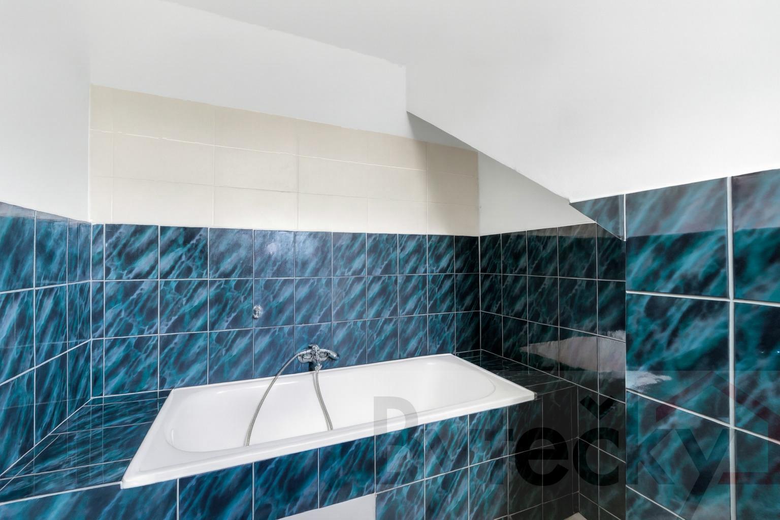 2NP (patro): kuchyň, WC, chodba, koupelna s vanou, 3 pokoje, schodiště na půdu 80 m