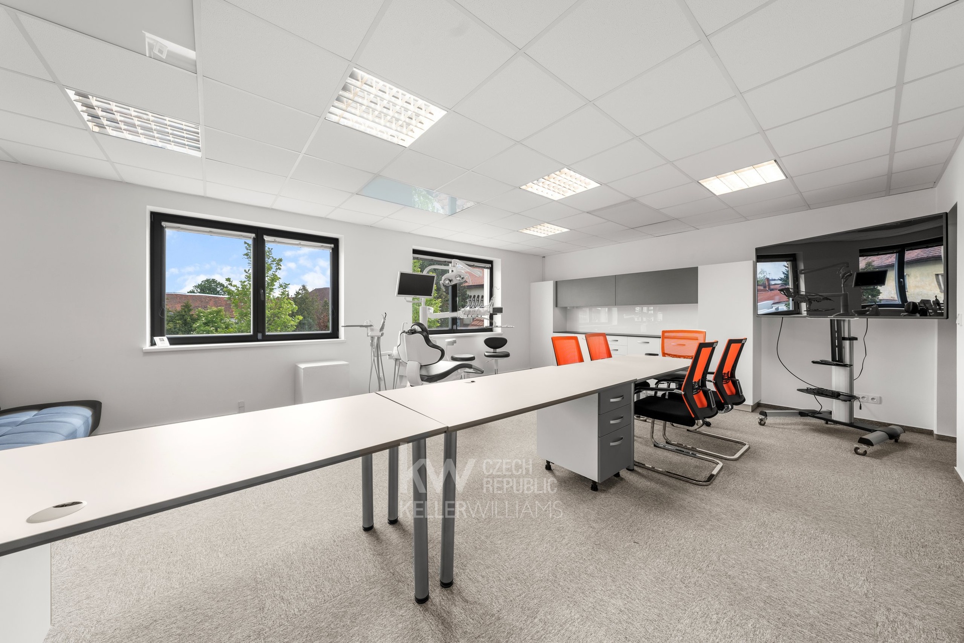 V prvním patře sídlí zavedená firma zabývající se vybavením zubních ordinací. Vedle ní na patře se nachází