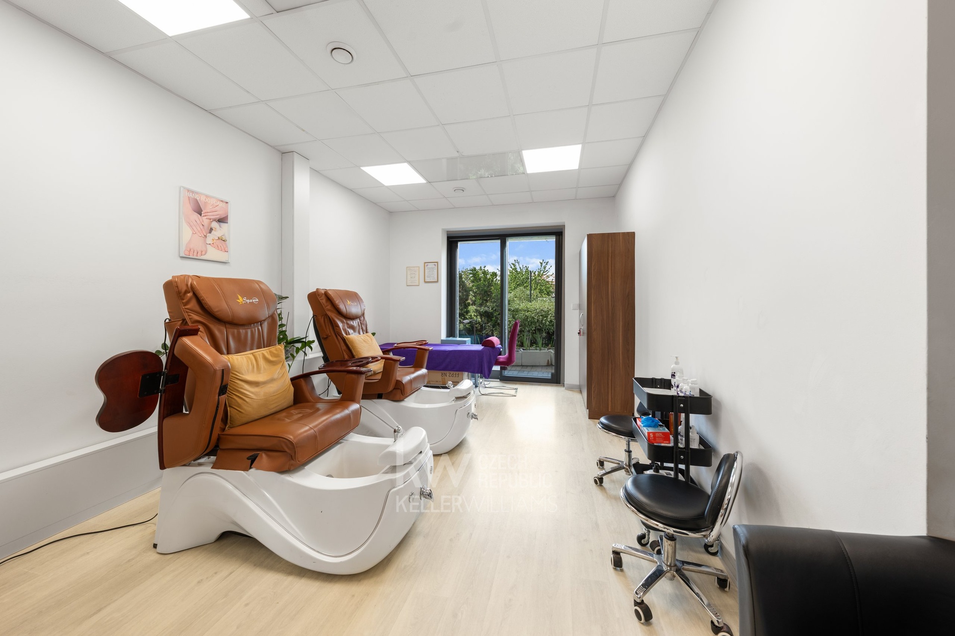 Přízemí nabízí moderní nehtové studio. Součástí je i kadeřnický salon. Oba podniky se mohou pochlubit