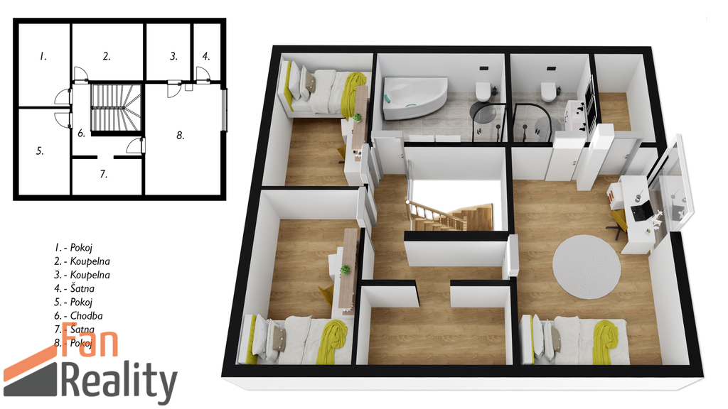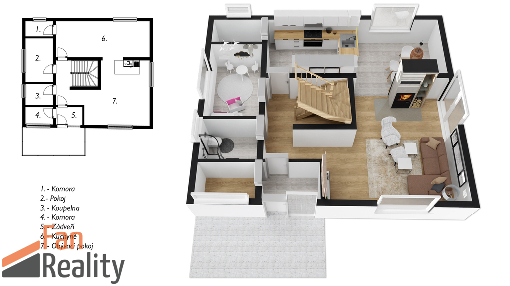 • Dispozice 5+1 – dostatek prostoru pro rodinu, pracovnu i hosty