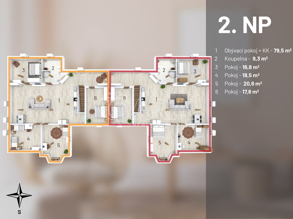 ✅ Kolaudováno, jako dvě bytové jednotky. Připravené prohlášení vlastníka pro dvě jednotky.