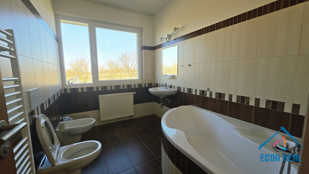 Dům sice spadá do kategorie novostaveb, ale byl dlouhodobě užíván nájemcem a interiér nebyl zatím rekonstruován. Pronájem celého domu tedy nabízíme za neuvěřitelných 36.000 Kč/měs + platby za dodávky a služby (dodávka studené vody cca 900 Kč/měs. - podle počtu osob., popelnice cca 2400 Kč/rok). Elektrika a plyn bude převedena na nájemce (zálohy jsou stanoveny dodavatelem, aktuální výše cca 2500,- Kč/měs elektrika a odhad 5.000,- Kč/měs plyn.