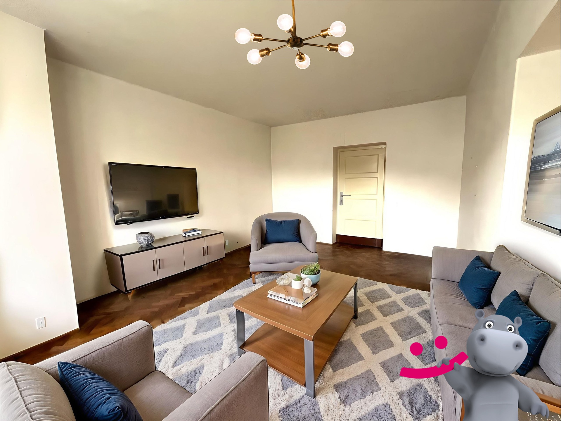 Byt o velikosti 95 m2 s lodžií (5m2) a sklepem (10 m2) se nachází v 1. nadzemním podlaží (zvýšené přízemí) z celkem 3 podlaží. Byty vede společenství vlastníků a je v osobním vlastnictví.