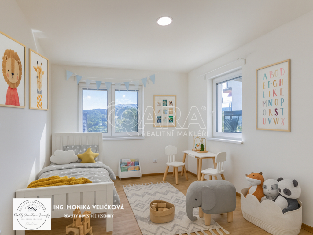 K prodeji nabízím novostavbu samostatně stojícího rodinného domu typu bungalov 4+kk s užitnou plochou 93 m². Dům byl zkolaudován v roce 2024 a nachází se v Jeseníku na ulici Modřínová, v klidné lokalitě s výjimečným výhledem na okolní hory. Díky kompletnímu dokončení je připraven k okamžitému nastěhování bez dalších úprav či investic.