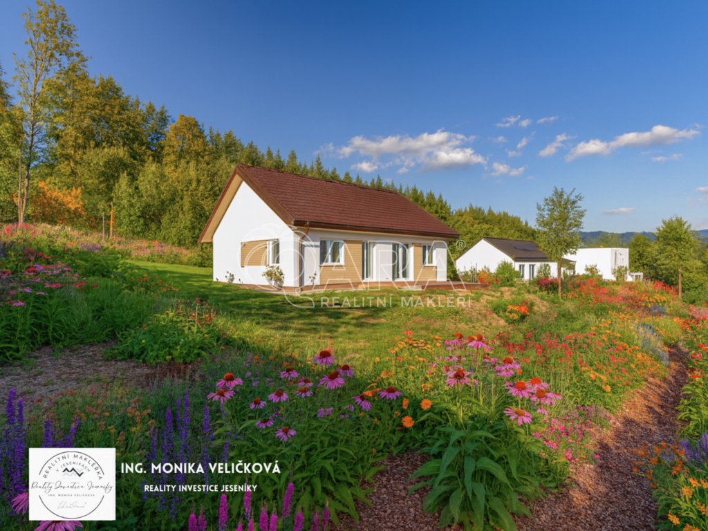 Prodej novostavby rodinného domu 4+kk 93m2 na Lipovském kopci v Jeseníku, zahrada 1111m2