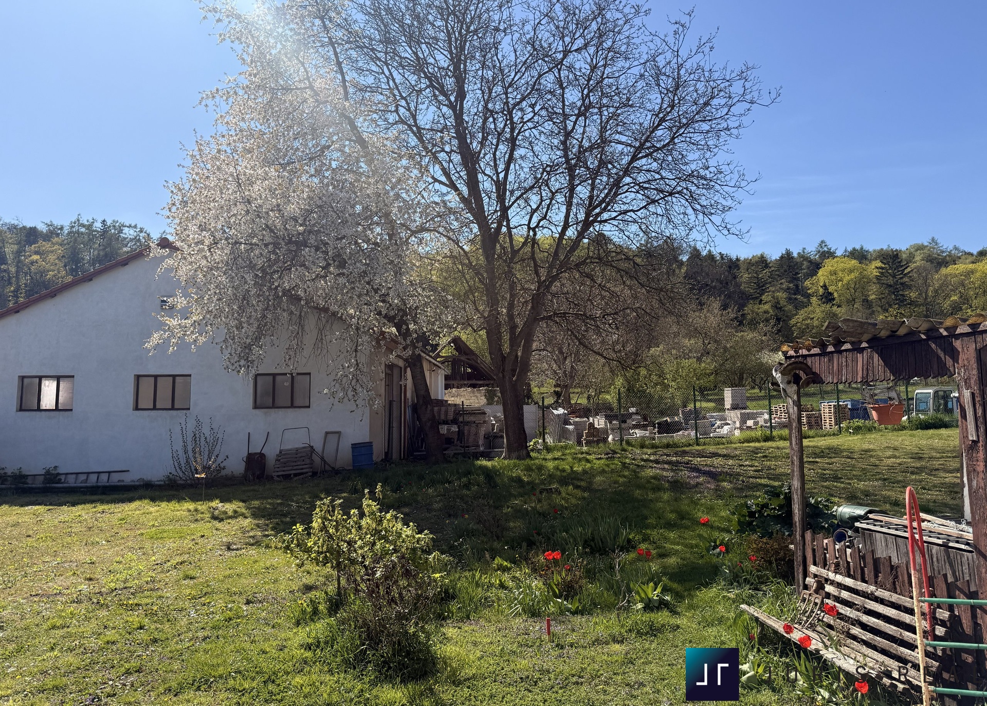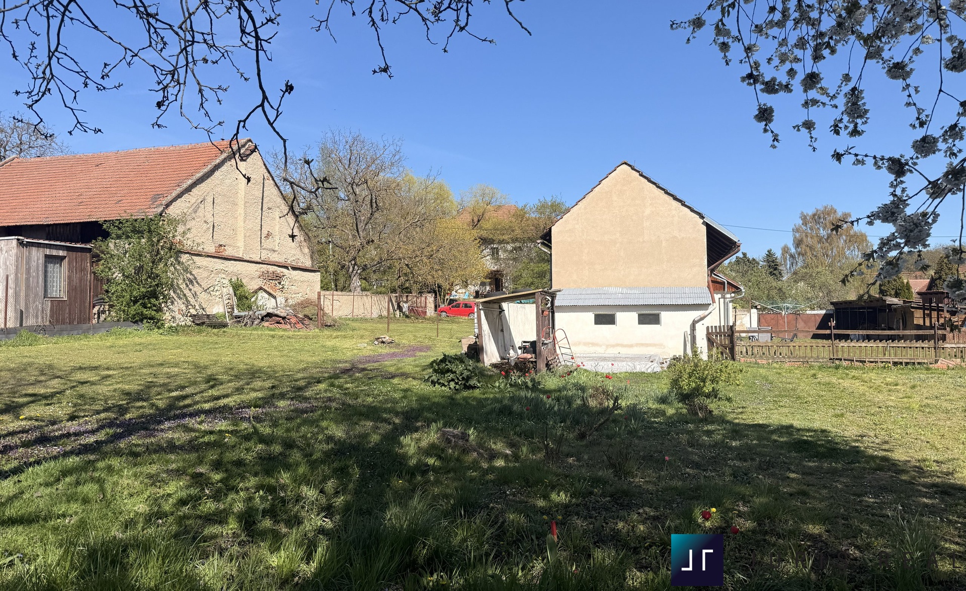 Za domem najdete udržovanou zahradu, která sloužila k pěstování ovoce a zeleniny, pozemek má celkovou výměru 756 m2 je rovinatý a slunný, s dobrým přístupem a možným vjezdem až na zahradu. Vedle domu a zahrady se nachází další pozemek o výměře 800m2, který je možné využít jako stavební parcelu. V souladu s územním plánem je pozemek vyhrazen pro bydlení vesnického typu (BV). Napojení na inženýrské sítě je možné u domu, odpady lze řešit jímkou, případně čističkou odpadních vod.