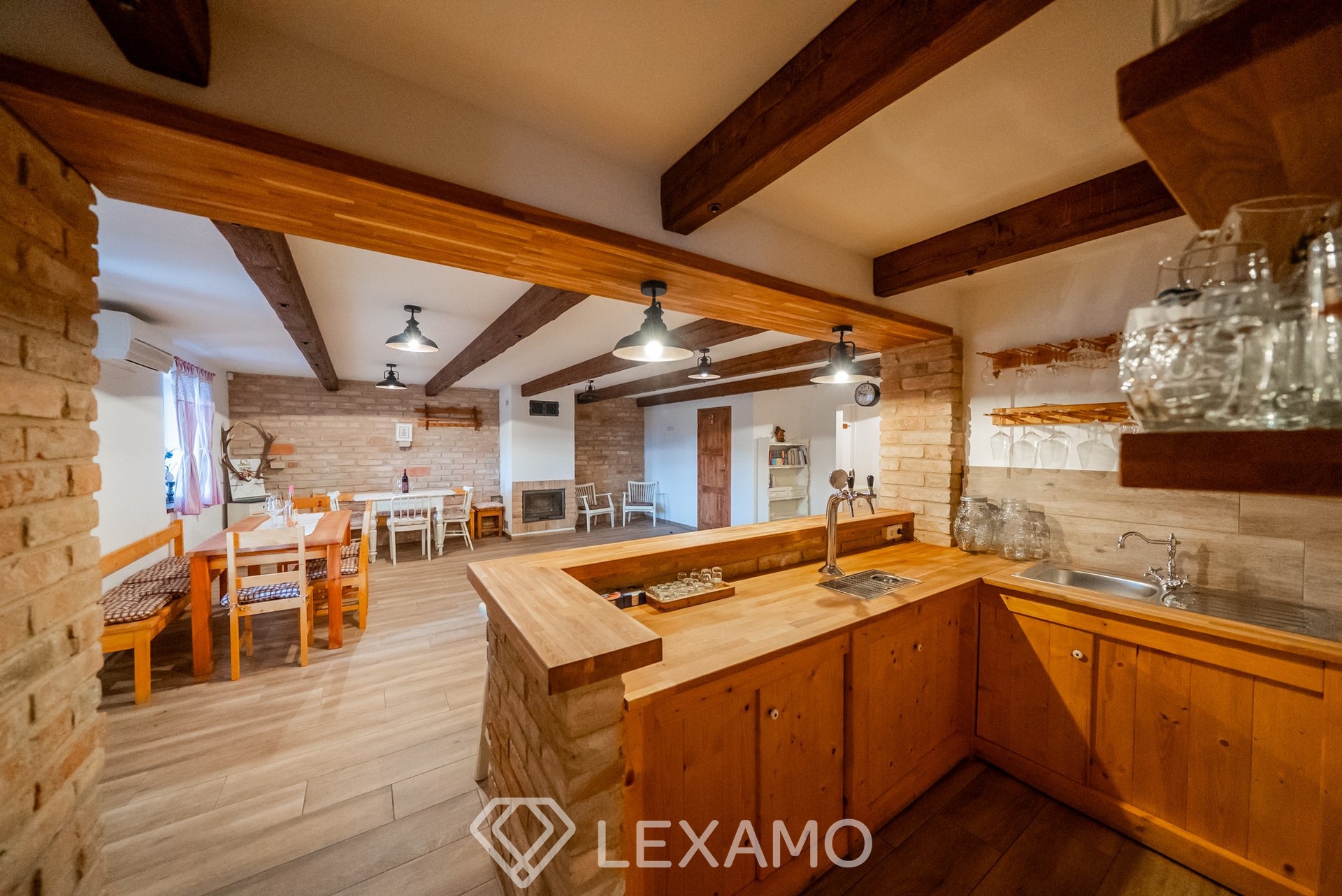 Velkým benefitem je samostatná část domu s kuchyní, místností s barem a sklepem, která nabízí široké možnosti využití – od rodinných oslav, přes posezení s přáteli až po degustace vín či jiné společenské akce.