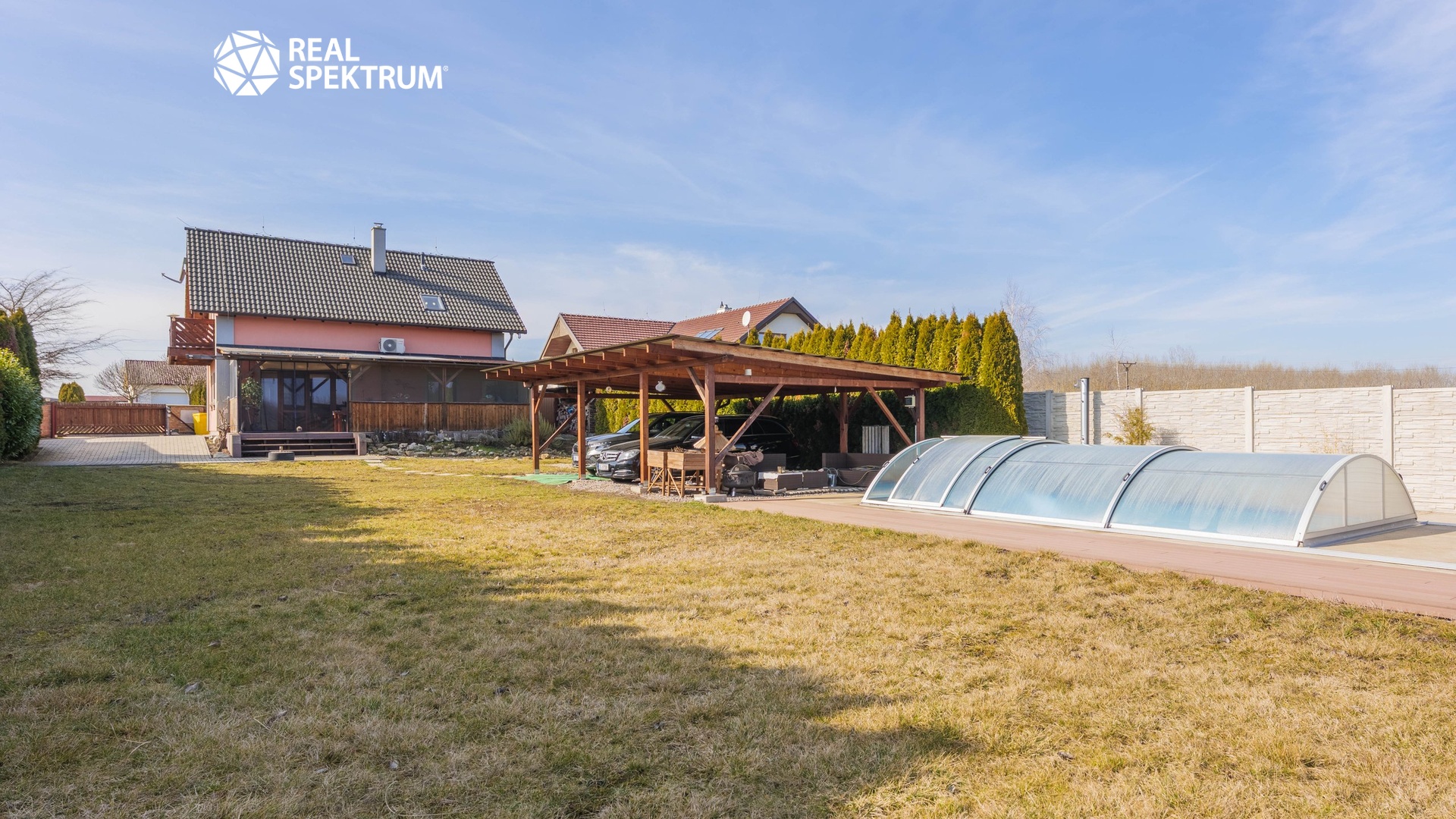 Velkým benefitem je upravený pozemek s krytým bazénem s ohřevem, garážovým stáním pro více vozidel, dvěma zahradními domky, dřevníkem a ovocnou zahradou. Do Brna se dostanete po rychlostní silnici za 35 minut a do 90ti minut jste ve Vídni za nákupy, či na letišti.
