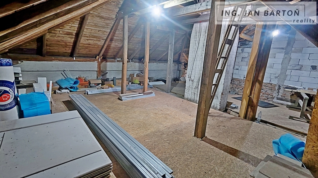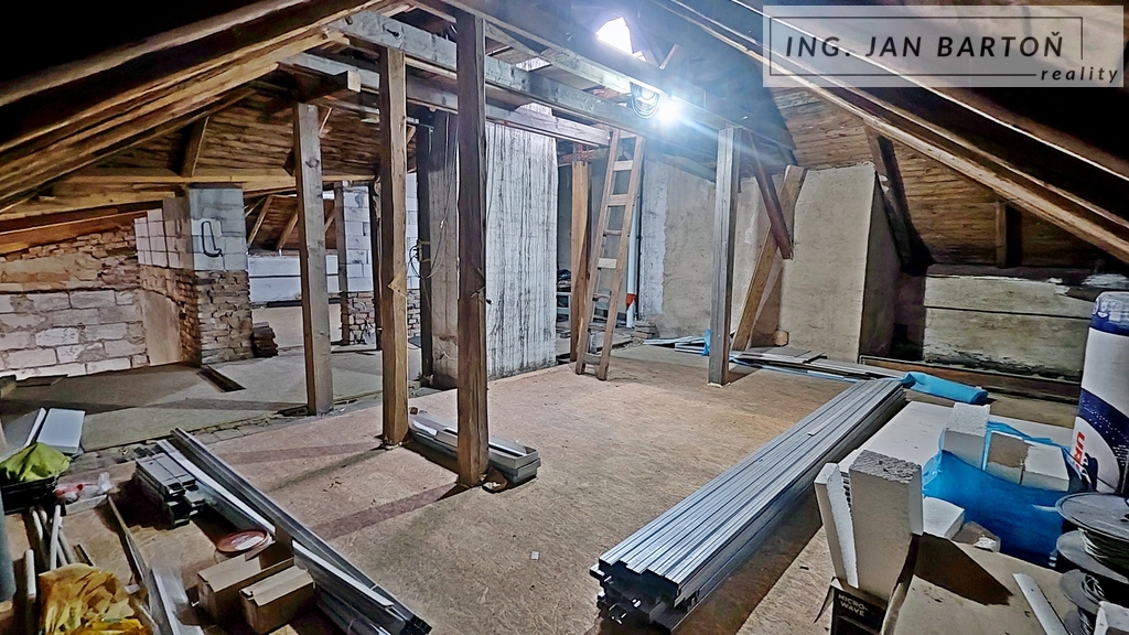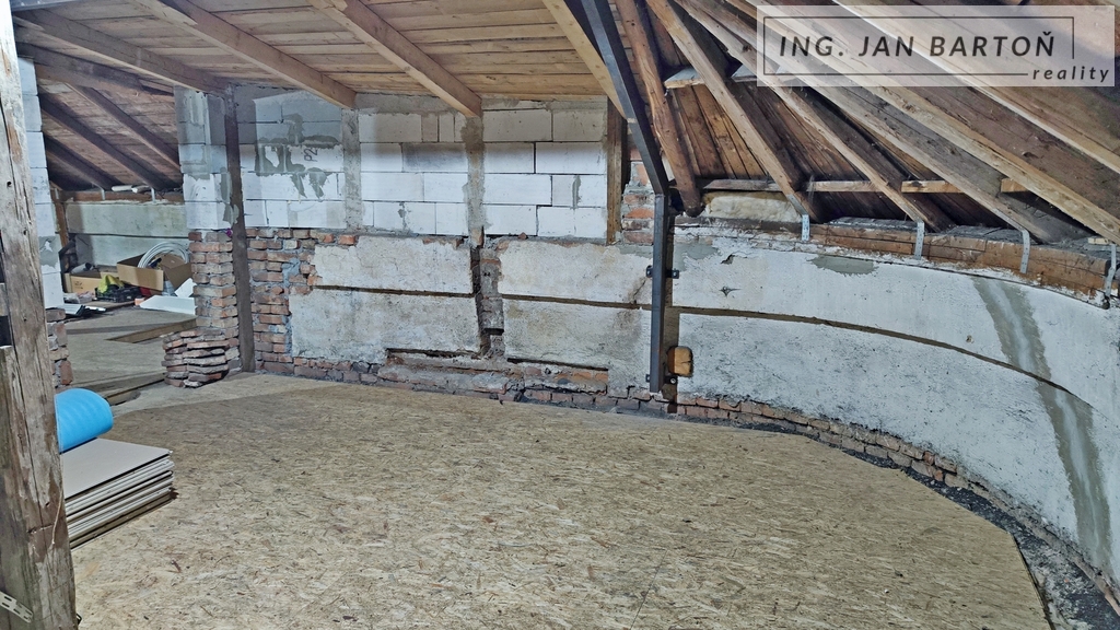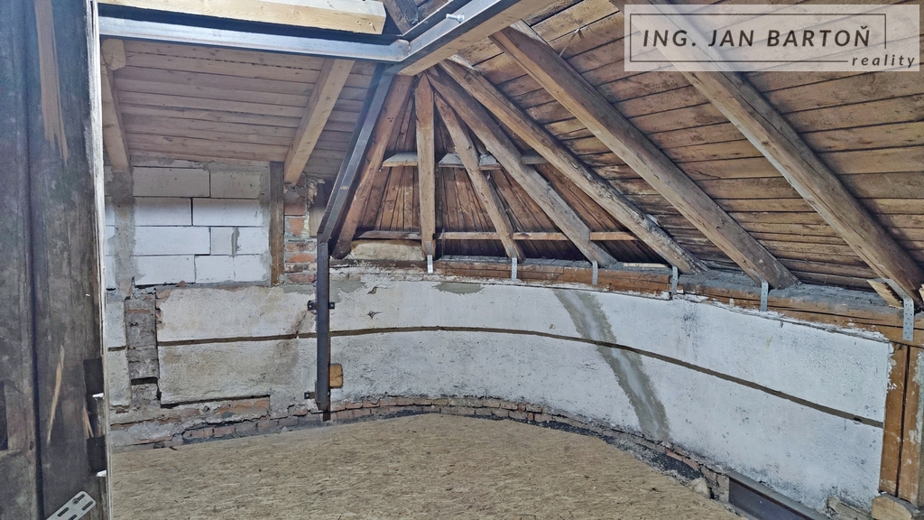 Nabízím k prodeji nebytový prostor / ateliér v podkroví domu se třemi dalšími bytovými jednotkami. K ateliéru náleží 941/3458 podíl na pozemku (celkem cca 429m²) kolem domu - zahrada a výhradní parkování pro vlastníky jednotek v domě.