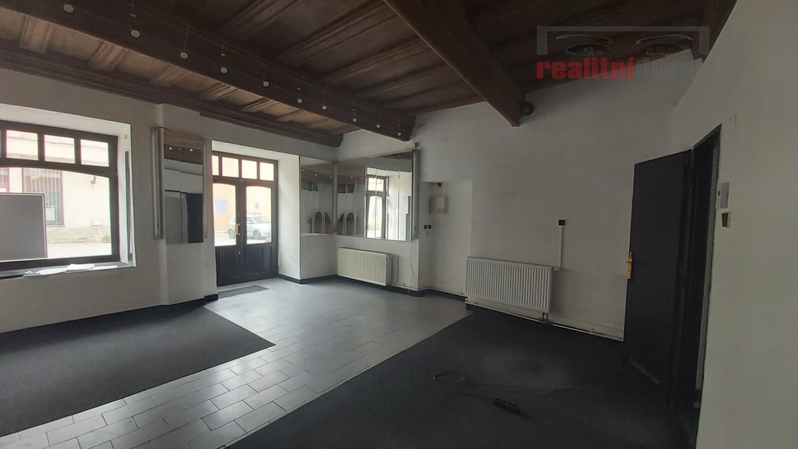 1NP/vstup z ulice - obchodní prostor o výměře 42 m2, zázemí, výlohy do ulice, renesanční trámový strop - volné