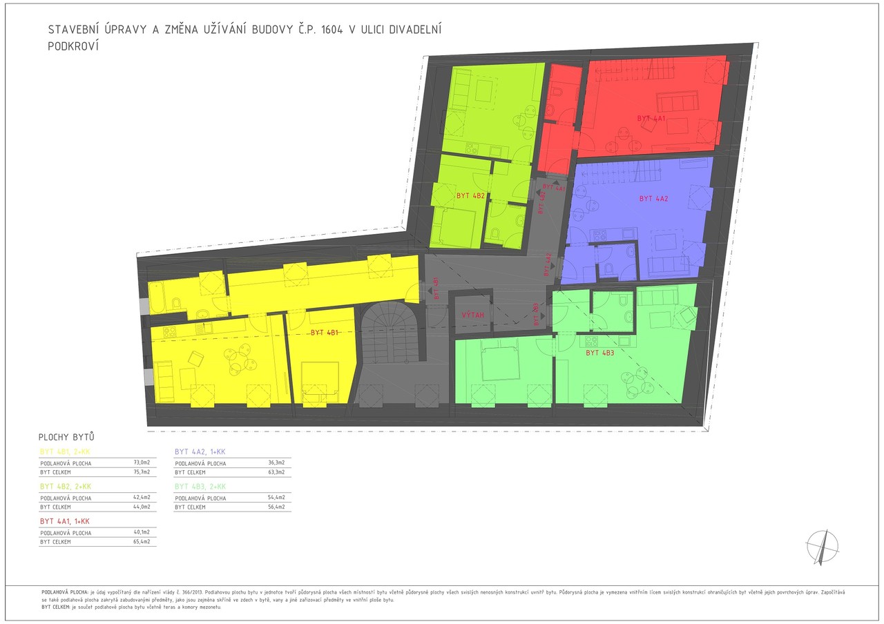 Vítejte v Rezidenci Divadelní20 luxusních bytů s privátní zahradou v centru JihlavyPočátek výstavby březen 2024 a předpokládaný termín ukončení výstavby prosinec 2025 Nabízíme prodej bytu 2+KK - 4B1 o ploše 73 m2, který najdete v podkroví s výhledem do zahrady a ul. Divadelní, orientovaný na jihozápad a severozápad. Uvedená cena je vč. DPH, podílu na pozemku, zahradě a osazení elektroměru. Klienti mají možnost výběru ze standardního vybavení (podlahové krytiny, dlažby, obklady, sanita s bateriemi, dveře s obložkovými zárubněmi), případně zvolit nadstandard. K bytové jednotce či ateliéru je možné si dokoupit sklep.