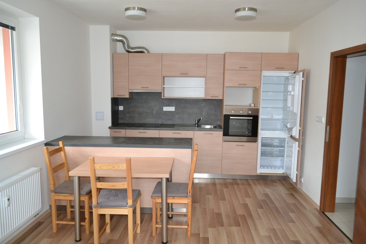 Ve výhradním zastoupení nabízíme k pronájmu byt 2+kk (46,50 m2) s parkovacím místem na ul. U Dlouhé stěny v Jihlavě. Přestože se byt nachází v 1.NP domu, je díky své poloze orientován do zadní části budovy, a tedy vysoko nad zemí.Velkou výhodou je vlastní parkovací místo před domem. Byt je k nastěhování nejdříve od května 2026. Vybaven je kuchyňskou linkou se spotřebiči: sklokeramickou varnou deskou, el. troubou, digestoří, lednicí s mrazákem, dále jídelním stolem a židlemi.Topení dálkové s měřiči tepla. V koupelně sprchový kout, WC, umyvadlo.K bytu náleží komora na chodbě.Měsíční náklady: nájem 14.000,-Kč, zálohy vč. elektřiny 4.502 Kč/2 osoby. Kauce majiteli 28.000,-Kč, provize RK 14.000,-Kč. Majitel požaduje nekuřáky, zvířata nejsou povolena. Jedná se o vyhledávanou lokalitu klienty nedaleko centra města Jihlavy. V místě veškerá občanská vybavenost.V případě Vašeho zájmu kontaktujte makléře na termín prohlídky.