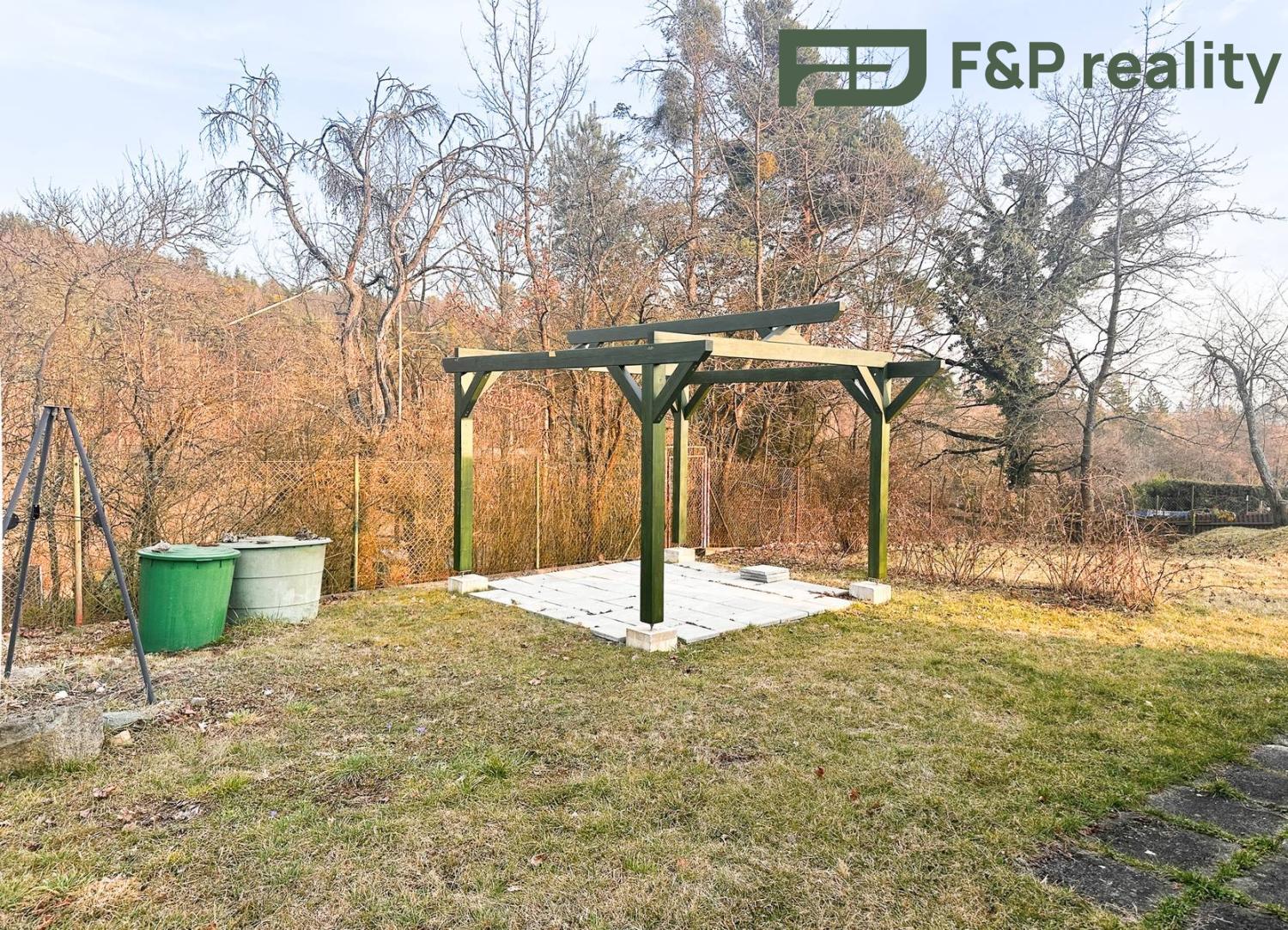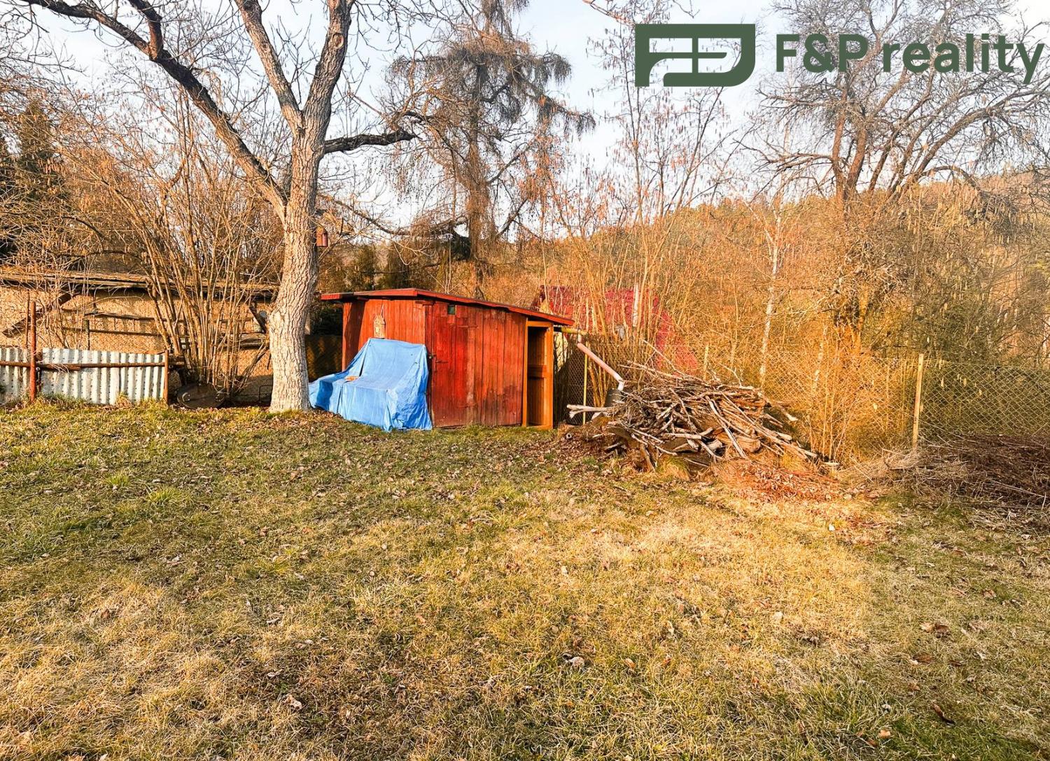 Pozemek: ve vlastnictví města Jílové u Prahy, dlouhodobý nájem od r. 1952. Oplocená a udržovaná zahrada, dřevěná bouda cca 9 m2 se suchým WC. Rozpracovaná pergola (materiál – zakoupená prkna – může být součástí prodeje).