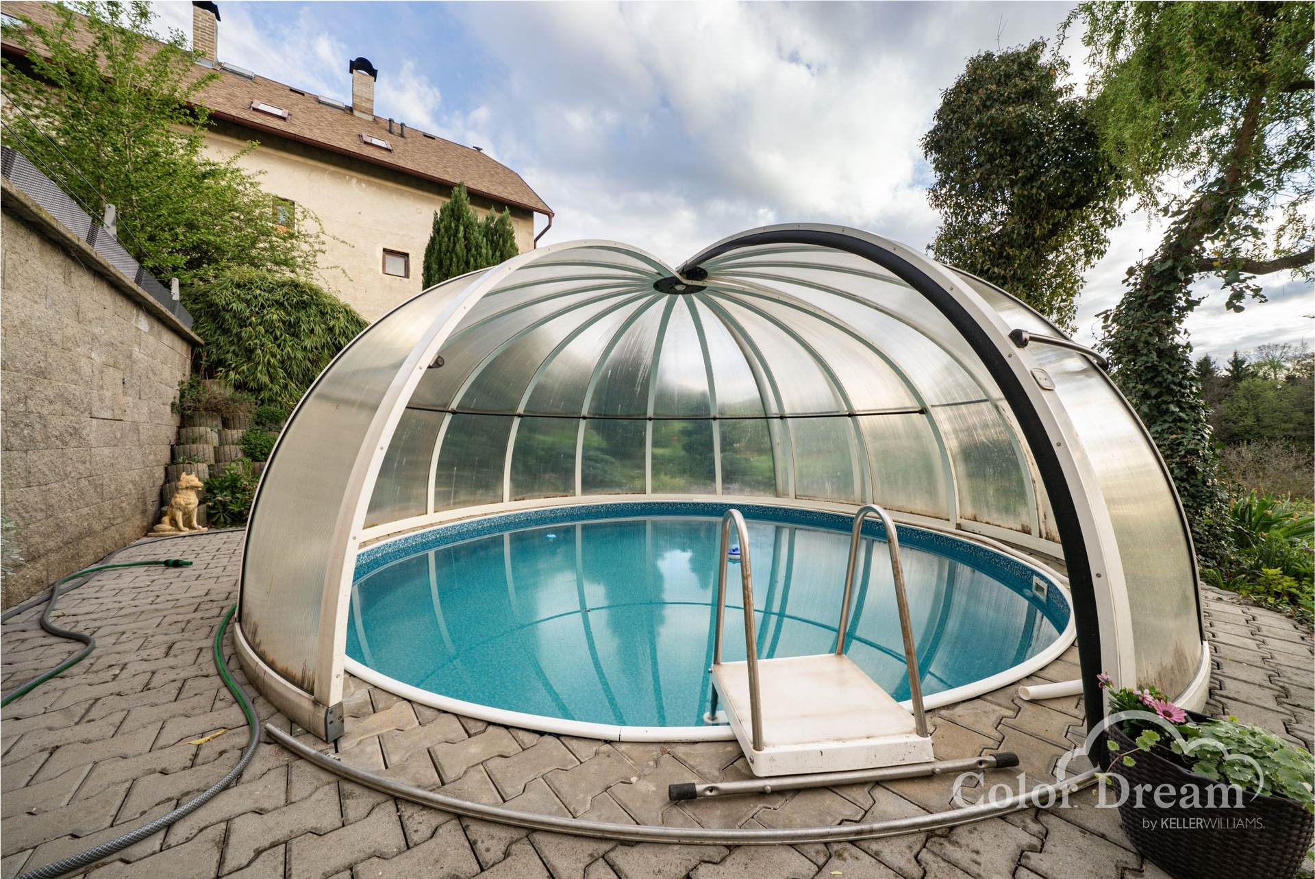Terasovitá zahrada o rozloze téměř 2 000 m2 je klenotem celého pozemku. Naleznete zde vkusně zařízené relaxační kouty, prostor pro sezení, zeleninové či bylinné záhony, skleník, ale také krytý bazén. Snadno sem umístíte trampolínu. Je jen na vás, zda upřednostníte spíše divočejší část zahrady, dáte si oběd na terase nebo se ponoříte do zahradničení. Zahrada přirozeně přechází v krajinu, což ji opticky zvětšuje a vám dává pocit svobody a volnosti. Můžete z ní pozorovat různé druhy ptáků a zvěře.