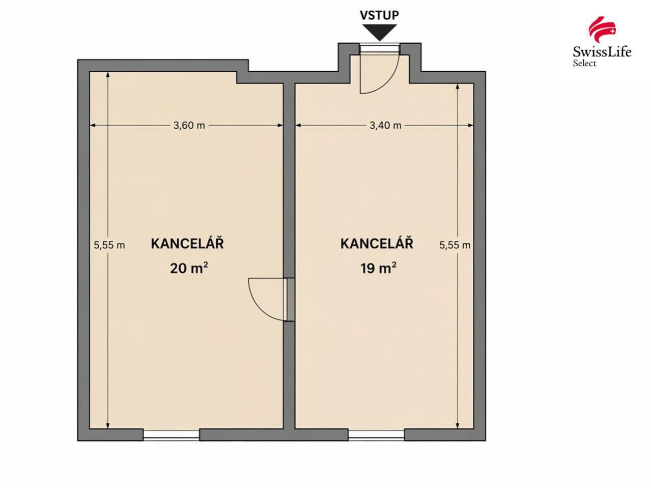 - 2 místnosti (19 m a 20 m)
