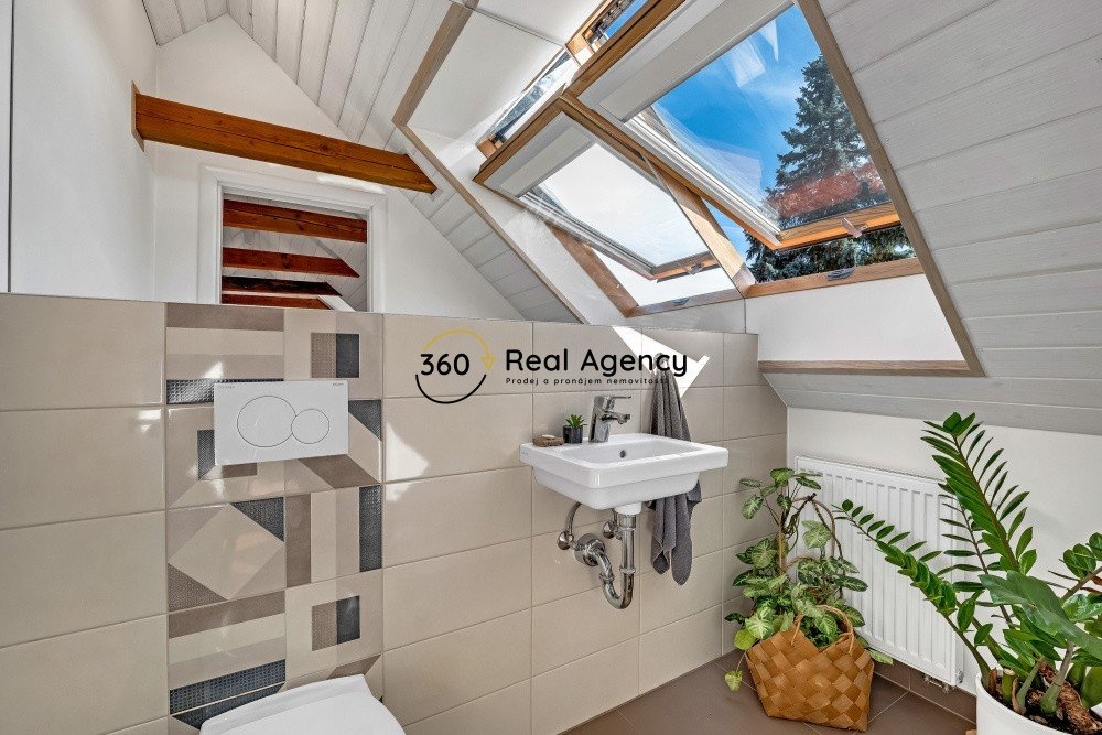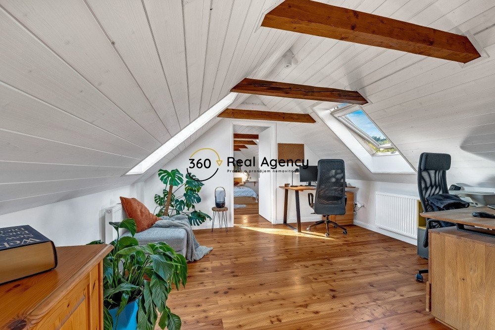 V patře najdete dva dětské pokoje, prádelnu, koupelnu s vanou a především prostornou ložnici s vlastní kanceláří a samostatnou toaletou. Ideální dispozice pro rodinu, která potřebuje zázemí i prostor pro práci z domova.