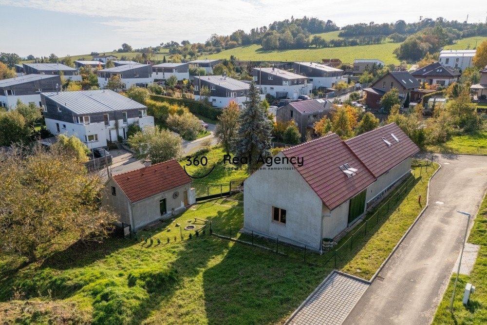 Pozemek o rozloze 597 m² nabízí příjemné soukromí, zahradu se vzrostlými stromy a výhled na kostel v centru obce. Nechybí obecní vodovod, vlastní čistička, připravené napojení na kanalizaci, ani kopaná studna pro zavlažování zahrady.