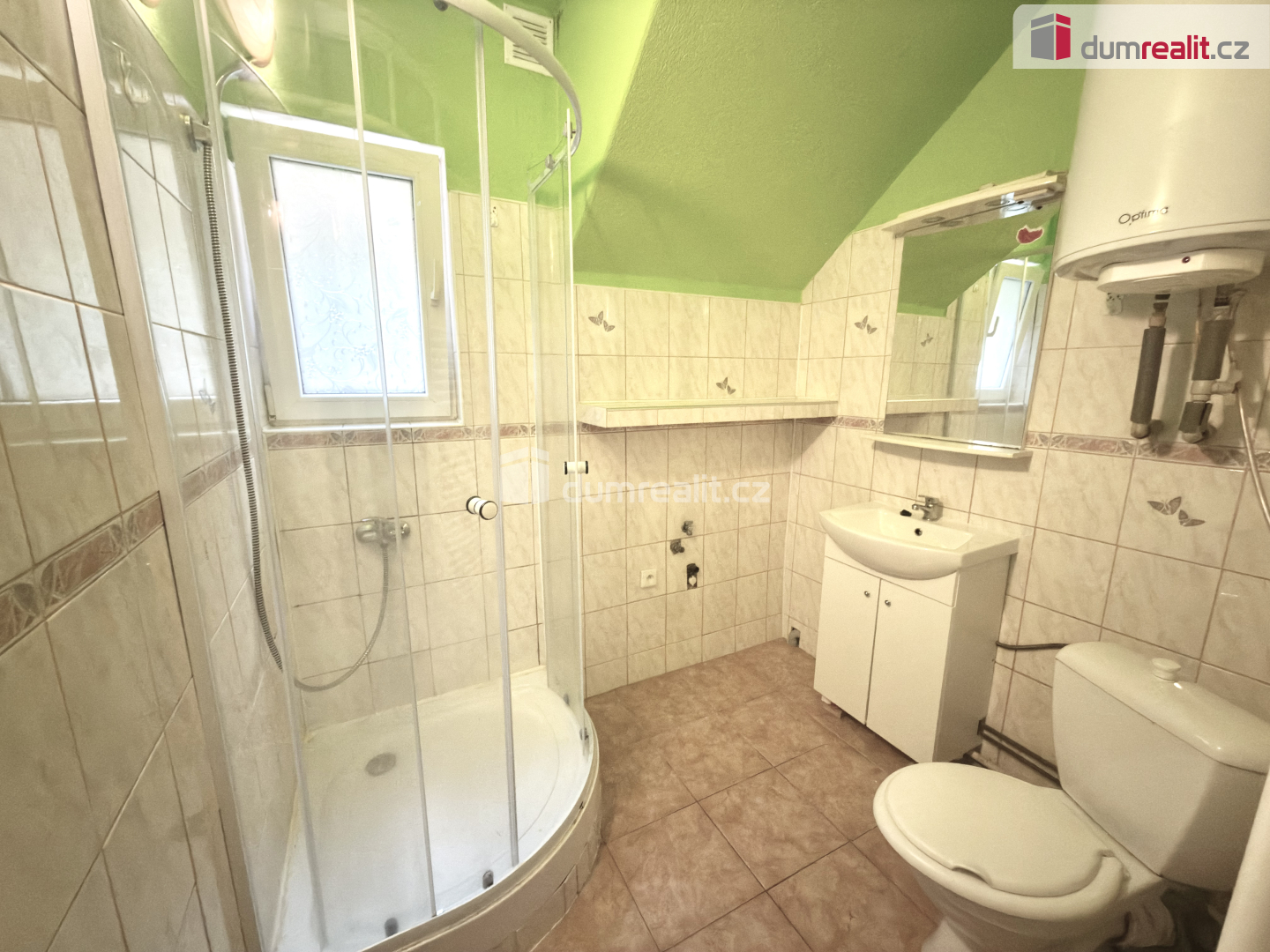 Jsou zde 3 pokoje, kuchyň, koupelna s Wc, jsou i k dispozici další úložné prostory k bytu, v mezipatře velký kumbál, prostorový na půdě a ve sklepě, taky lze využívat za domem kůlnu.