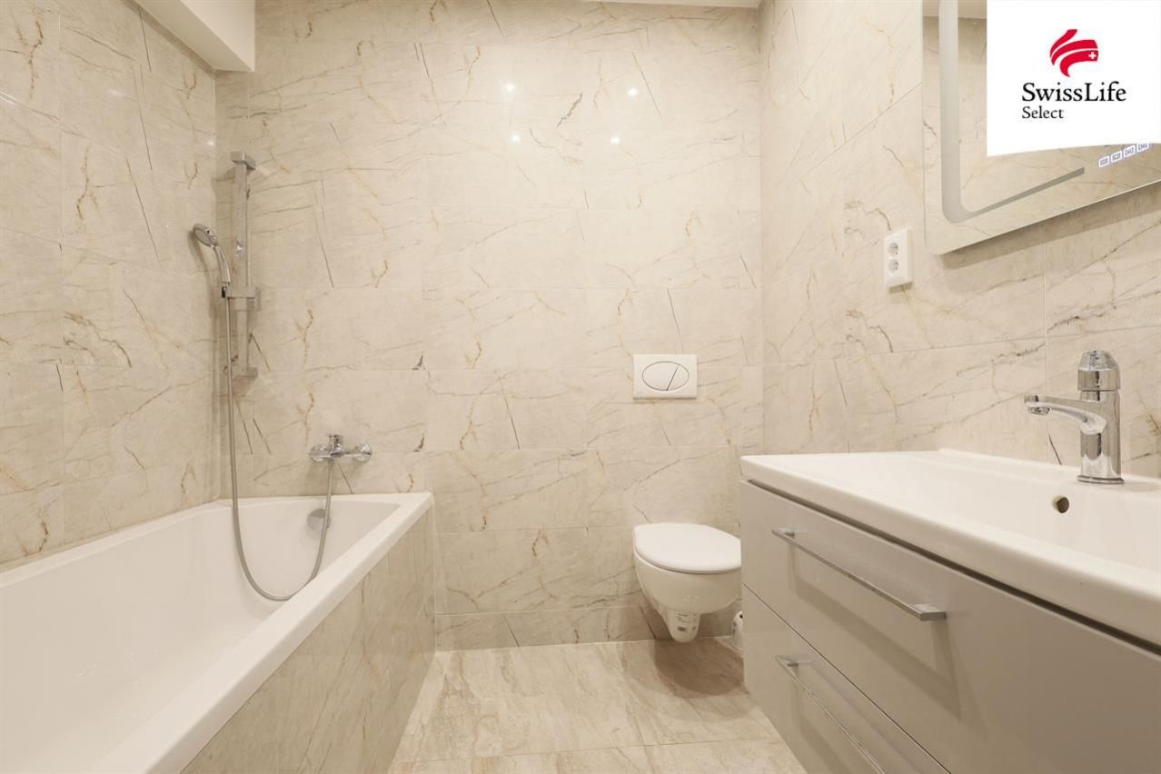 Interiér působí velmi moderně a útulně nová kuchyňská linka, el. vyhřívané podlahy, dveře, rozvody, koupelna i veškeré povrchy. Dispozice 2+kk poskytuje dostatek prostoru pro pohodlné bydlení jednotlivce, páru či menší rodiny. Součástí tohoto bytu je navíc sklepní prostor pod schody v přízemí.