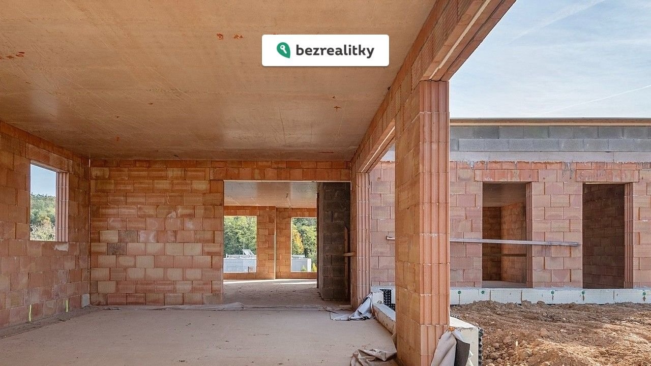 Nabízím ke koupi stavbu dvoupodlažního bezbariérového rodinného domu s dispozicí 6+kk s garáží pro dva vozy, s výtahem, bazénem a saunou. Nemovitost má platné stavební povolení a je připravena k prodeji ve fázi dokončené hrubé stavby nosných stěn, včetně střechy s kompletně dokončenými svody s retenčním a vsakovacím objektem, příjezdovou komunikací a všemi přípojkami technické infrastruktury (voda, kanalizace, elektřina, optický kabel).