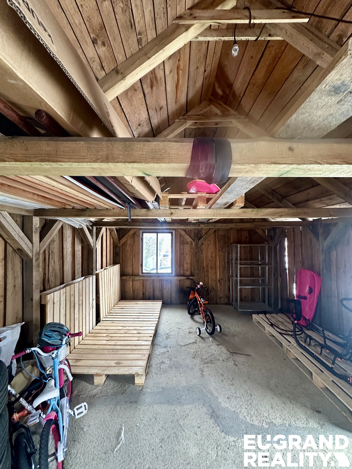 K domu náleží prostorná zahrada o celkové výměře 1 238 m², která poskytuje dostatek místa pro relaxaci i rodinné aktivity. Na pozemku se nachází dřevěná garáž o velikosti 23 m² a zděná stodola o výměře 63 m², nabízející široké možnosti využití – například jako dílna, skladovací prostor či zázemí pro hobby. Díky své poloze zahrada zajišťuje příjemný klid a dostatek soukromí.