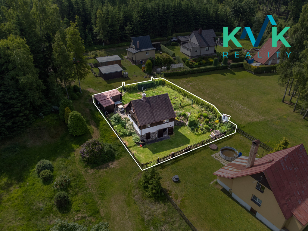 Pozemek 400 m² (zastavěno 55 m²) je celý oplocen dřevěným plotem. Obrovskou výhodou je udržovaná příjezdová cesta až k chatě a dva samostatné vjezdy pro bezpečné parkování na pozemku za plotem. Horní vjezd vede přímo k chatě, dolní do garáže. Spodní cesta je udržovaná obcí i v zimě (hlavní silnice 50 m).