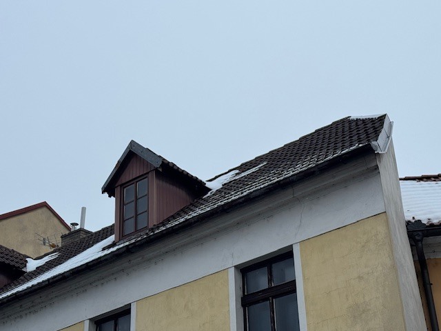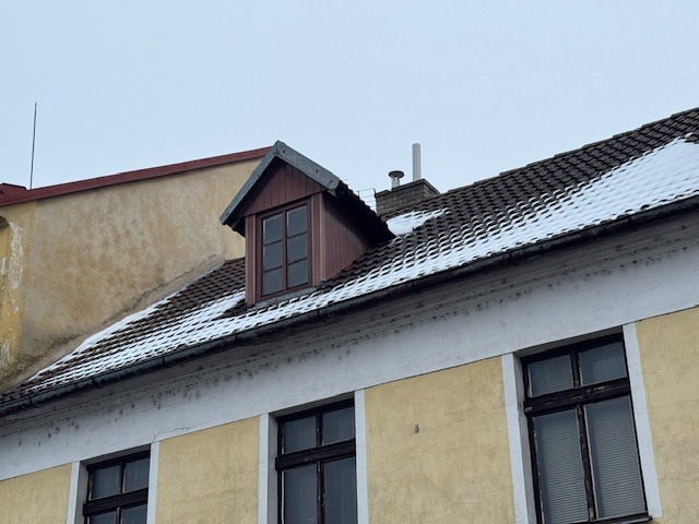Střecha budovy je sedlová s krytinou z tašek. Na střeše jsou žlaby se svody a vikýře. Součástí střechy