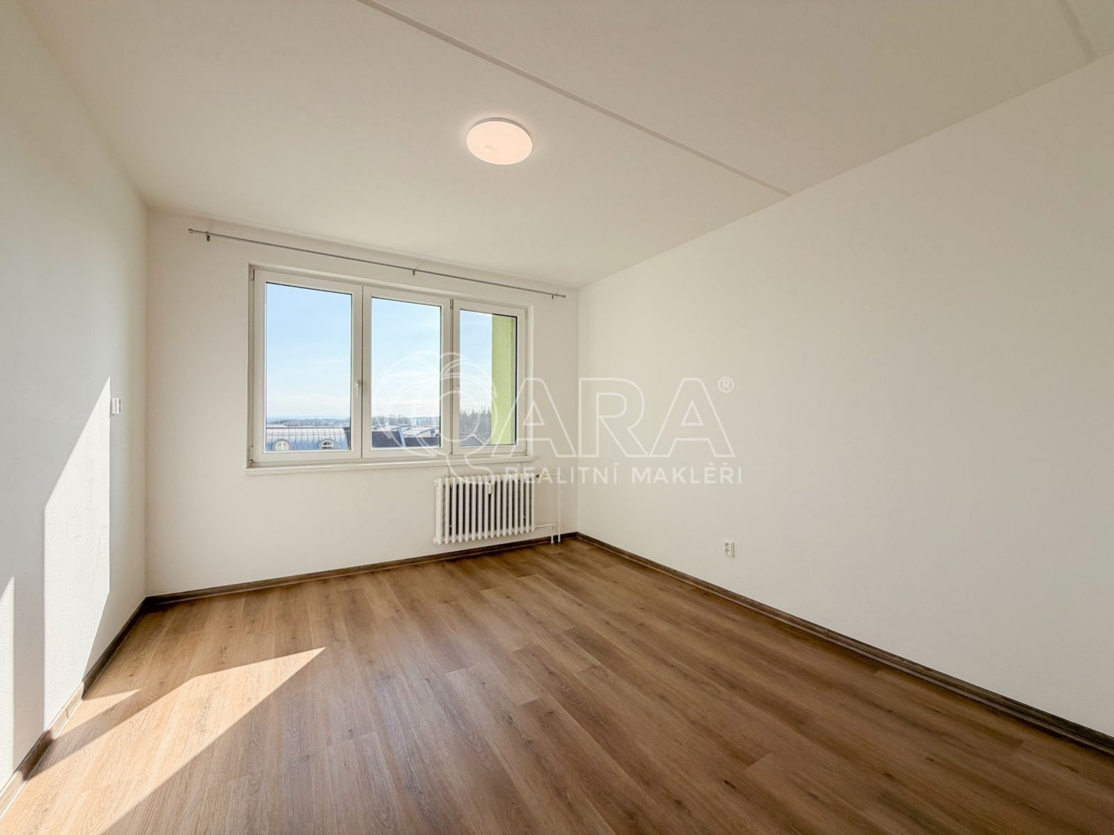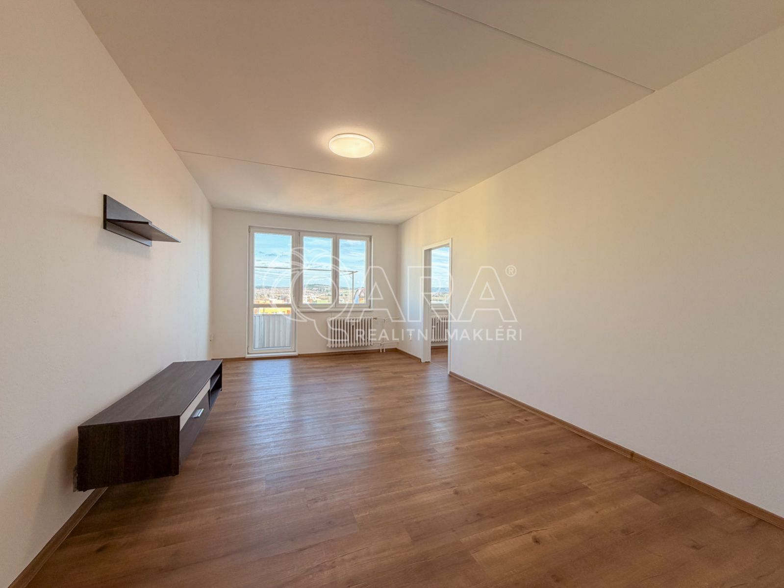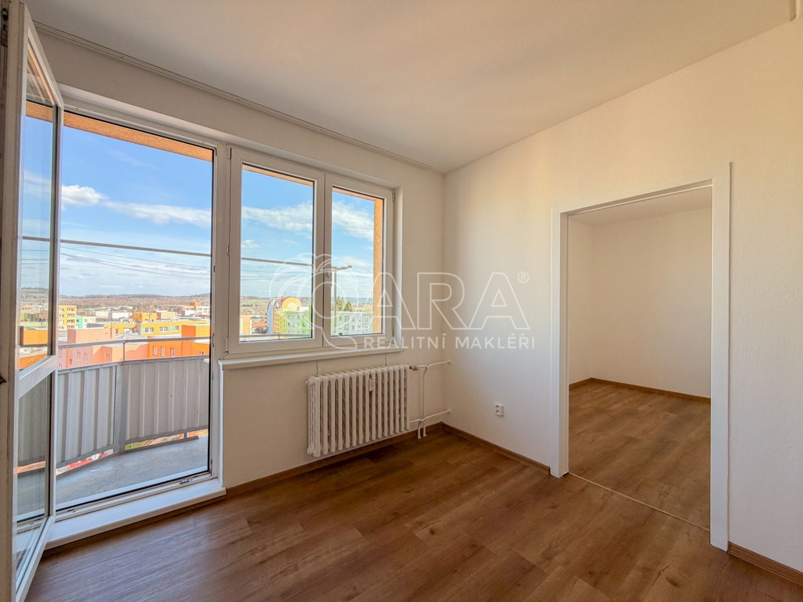 Dispozice bytu je velmi praktická a vhodná i pro větší domácnost. Ze vstupní chodby se dostanete do všech hlavních místností obývacího pokoje, samostatné kuchyně a tří pokojů. Obývací pokoj má navíc vstup na balkon, který poskytuje příjemné místo pro odpočinek s výhledem do okolí.